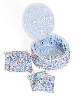 Regular price $56.00Our Quilted Jewel Round is super lightweight and a perfect place to store your bits and baubles. It opens up to offer ample room for earrings, necklaces, rings, and bracelets with elasticized compartments around the outer edge. This also comes with a snappable earing bar and 4 drawstring pouches that can be gathered together on a keeper. This case makes the perfect thoughtful gift for a lover of jewelry and accessories, or an ideal treat for yourself when you're off on your travels.