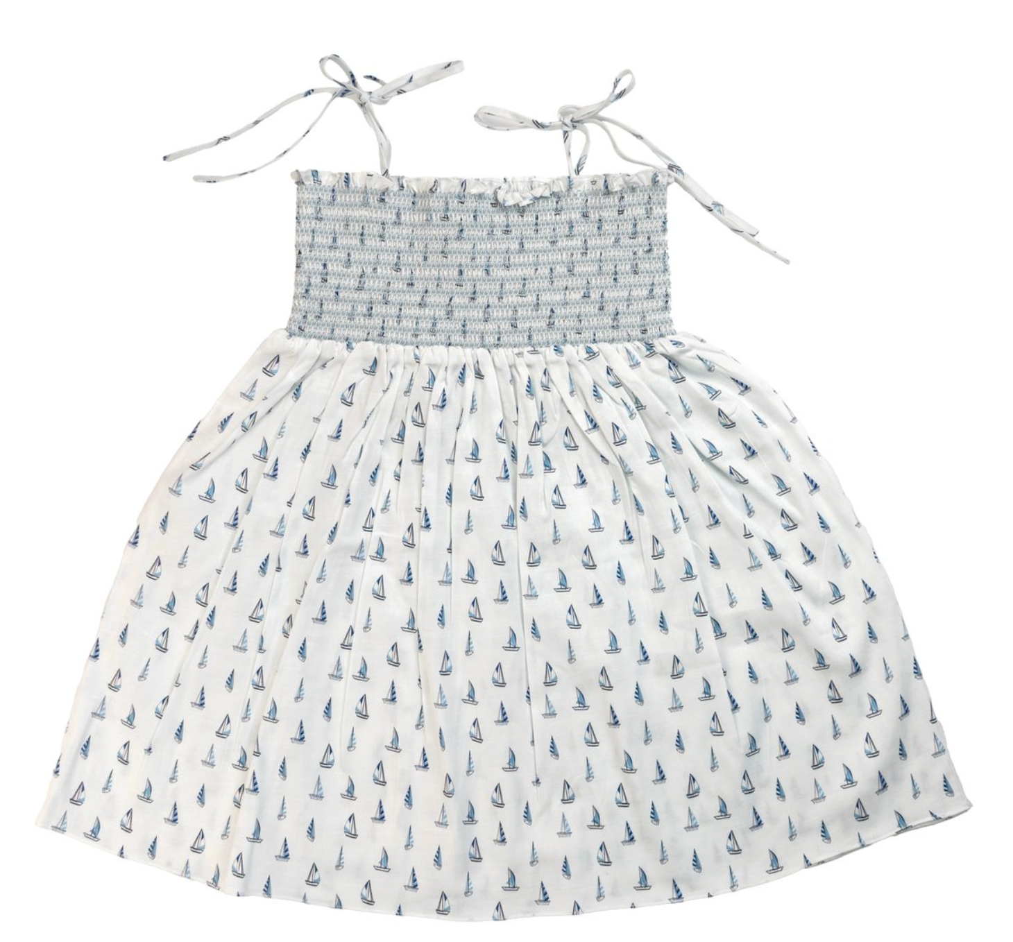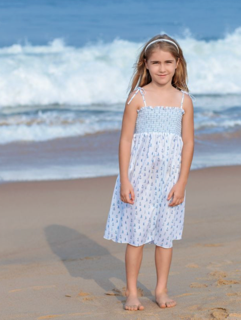 Regular price $65.00Set sail in style with this charming smocked dress, featuring a playful boat print that captures the spirit of summer. Made from 100% cotton, it’s soft, breathable, and perfect for warm-weather adventures. The smocked bodice offers a comfy fit, while the tie-style straps add a sweet, adjustable detail. Ideal for casual days, seaside strolls, or family outings.