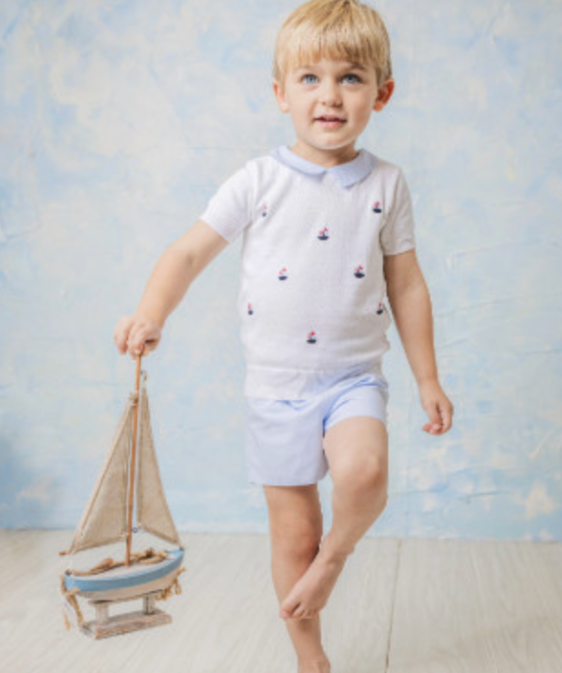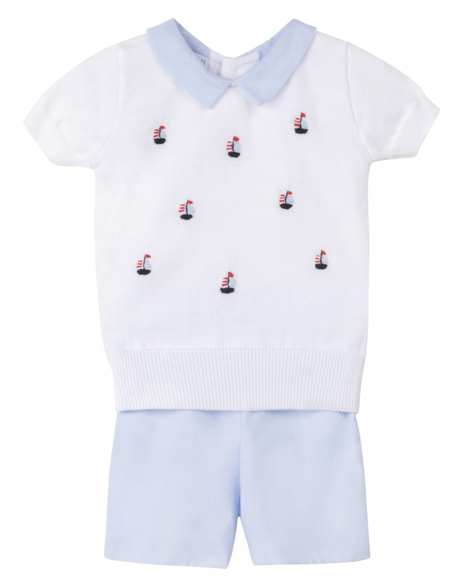 Regular price $58.00The pointelle Sloane Knit Top features a contrast knit scallop collar and faux shell buttons.