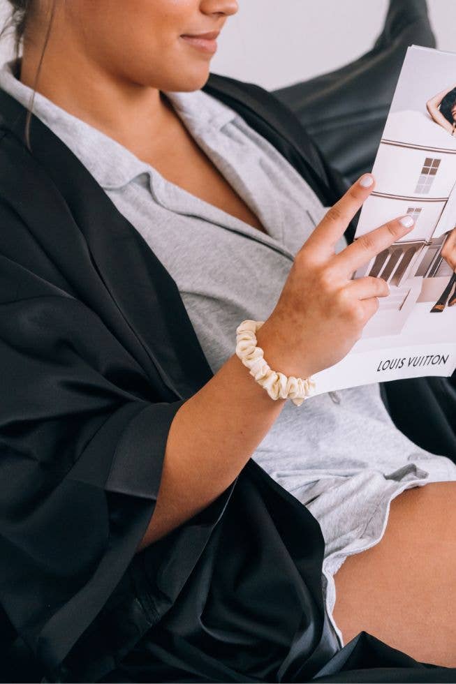 Your TELETIES just got an upgrade! The TELETIES Silk Scrunchies are made of 100% natural silk, making them super soft and gentle for your hair. It also prevents breakage and damage while you snooze.
