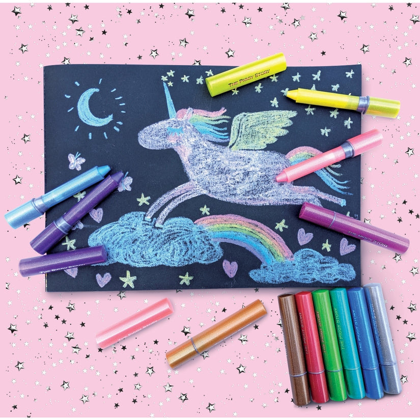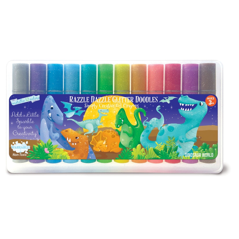Little creators can add sparkle to their creativity with 12 metallic gel crayons in the Dinosaur World Design! Made for small hands and big imaginations, these versatile glitter gel crayons will inspire crayon, pastel, and watercolor creations! Color with the ultra-soft crayons, smudge to create a pastel effect or use a wet brush to have a watercolor effect! Crayons are non-toxic, odorless and washable!
