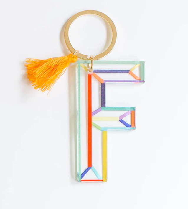 Acrylic initial keychain with gold hardware and cotton tassle