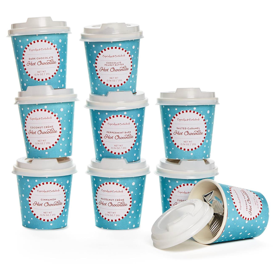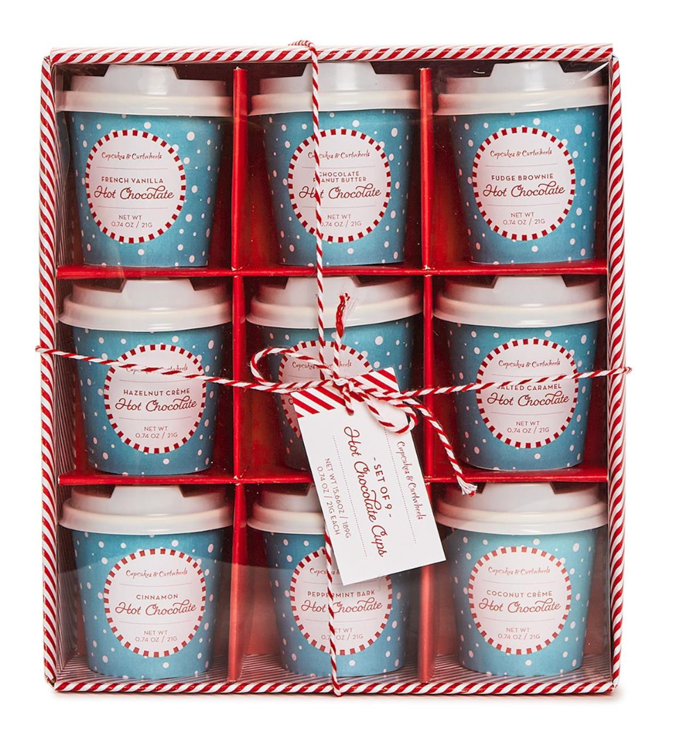 Experience the ultimate cocoa celebration with this delightful set, perfect for cozying up by the fire or spreading cheer at holiday gatherings. Packaged in a charming gift box, each set includes nine irresistible hot chocolate flavors, each lovingly crafted and ready to be savored in festive paper cups.