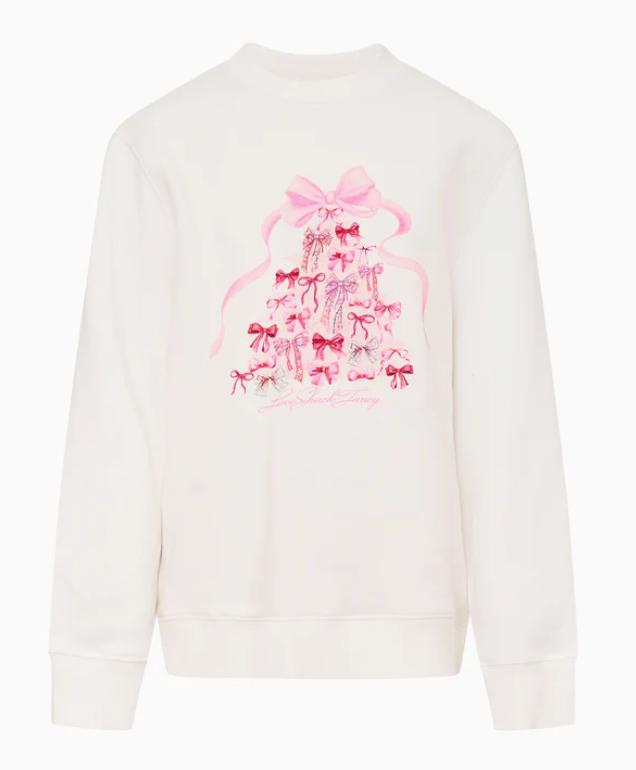 Regular price $195.00The Havenleigh Pullover brings holiday cheer in the softest way. This oversized sweatshirt features a festive tree graphic with bows and the LoveShackFancy logo. Ribbed trims at the neckline, cuffs, and hem add structure to the roomy silhouette, making it cozy yet stylish. A whimsical, festive layer perfect for lounging, gifting, or twirling through holiday moments.