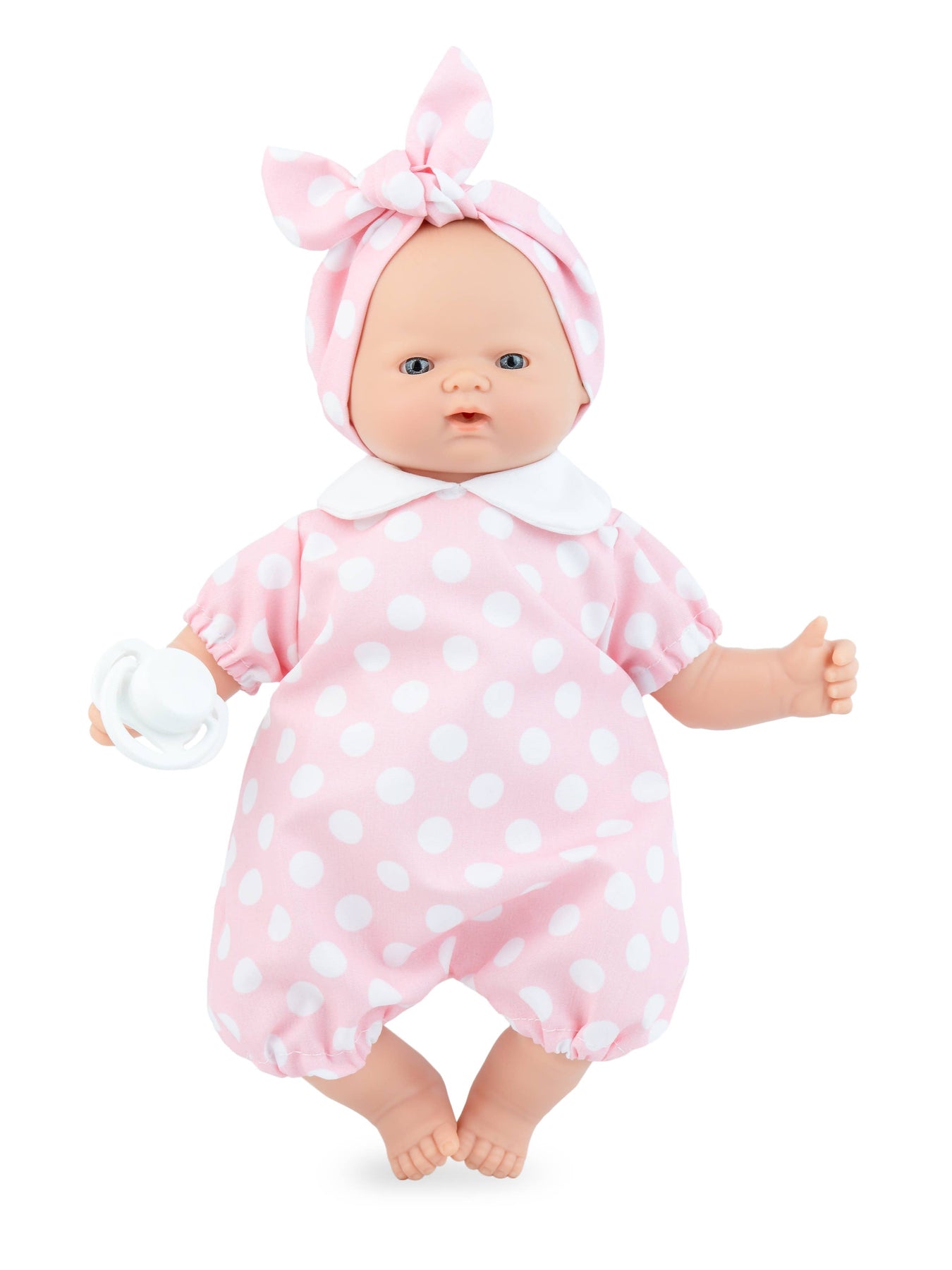 10" cm doll with a soft body and heads and limbs made of high quality vinyl. Sweet scented. Pacifier included.