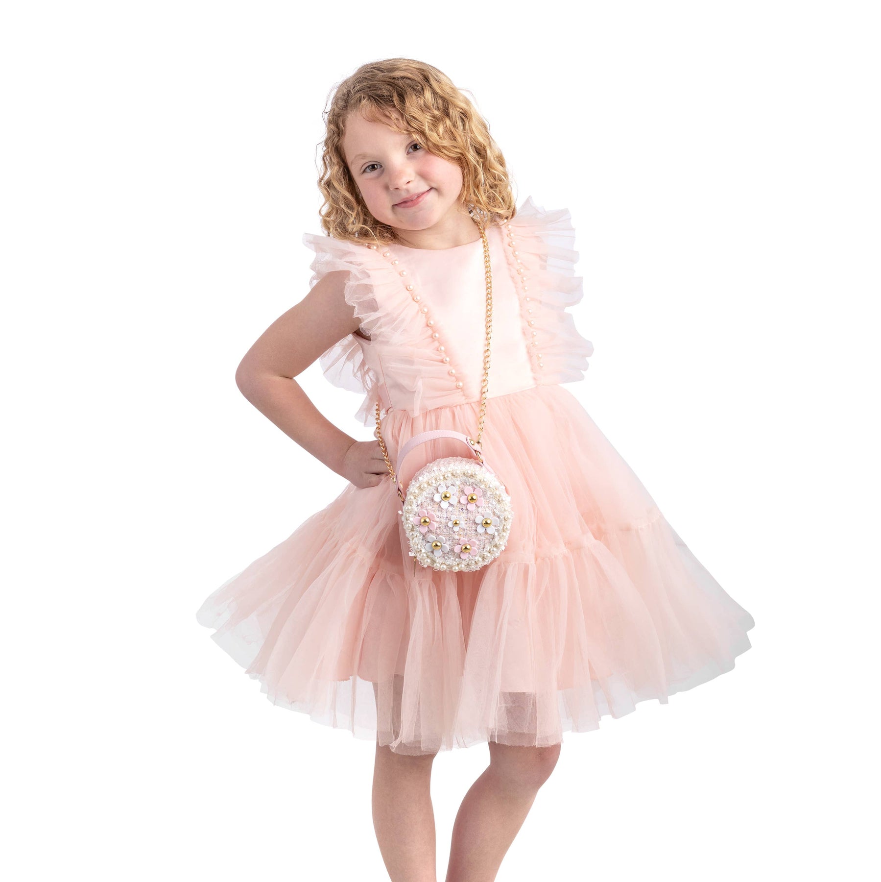 This brand new, adorable mini purse is every little girl's dream! It comes with a detachable gold chain strap. The purse can be worn cross body, over the shoulder, or just as a hand bag. Perfect for spring and Easter! The chain measures 21" Bag Size 5" tall x 5" wide