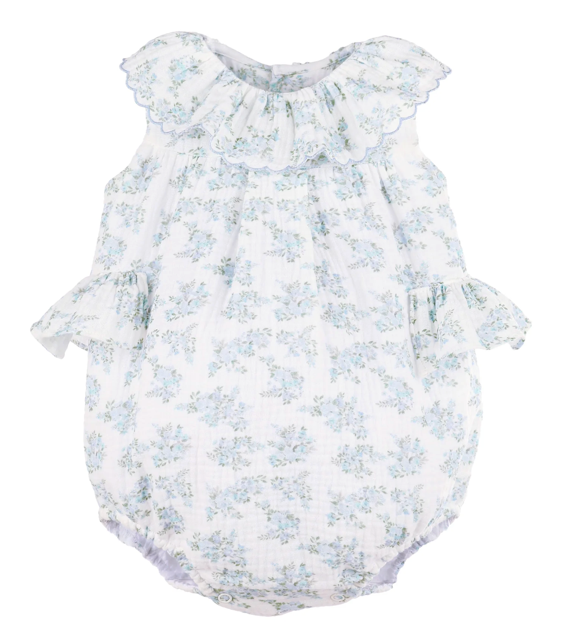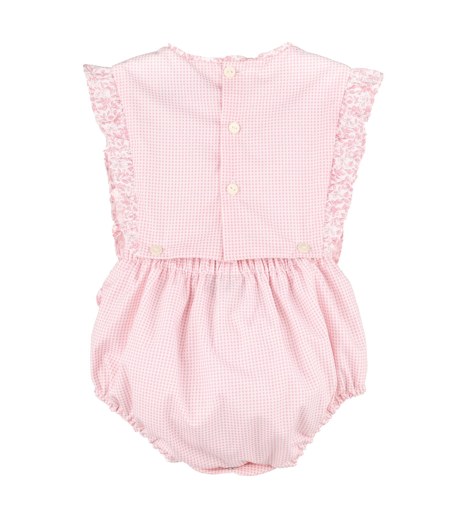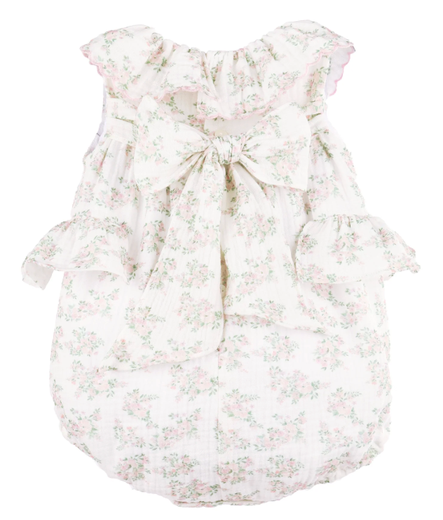 Our Margot Romper is full of delicate charm, featuring flutter sleeves, a softly gathered empire waist, smocking at the back, and a sweet square neckline with ruffle trim. Designed with comfort in mind, it includes elasticized leg openings and snap closures for easy changes—perfect for your littlest one’s special moments.