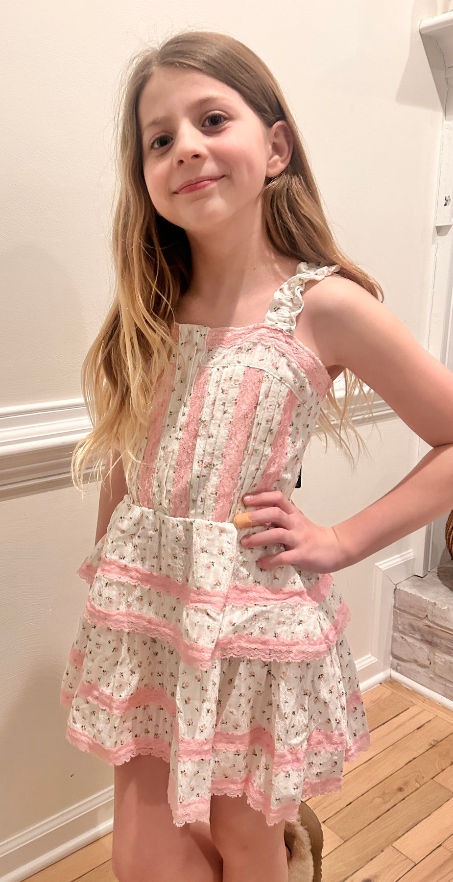 Full of vintage charm, our Louella Dress features voluminous puff sleeves with ruffle cuffs, a square neckline, and a full tiered skirt made for twirling—a timeless silhouette perfect for special moments.