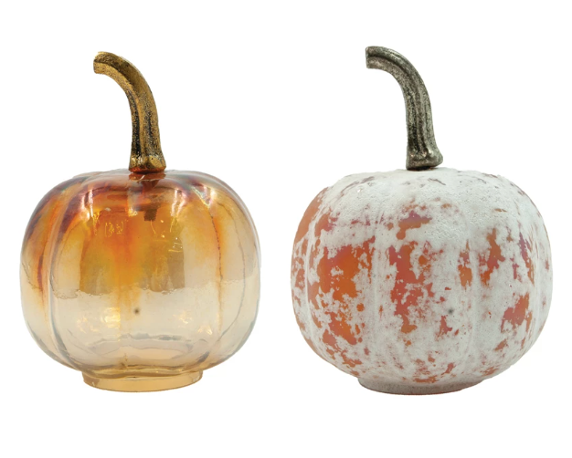 - Velvet ribbons are supplied, in forest green, burnt orange and orange, to be tied in bows on the pumpkins