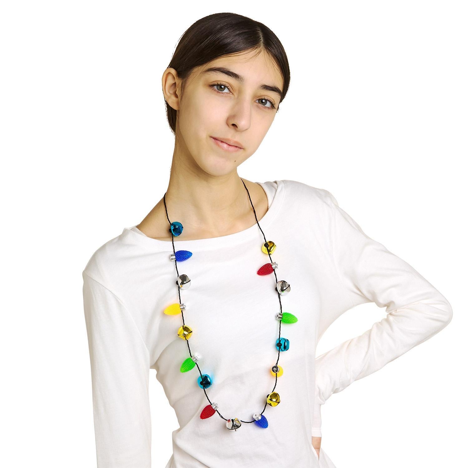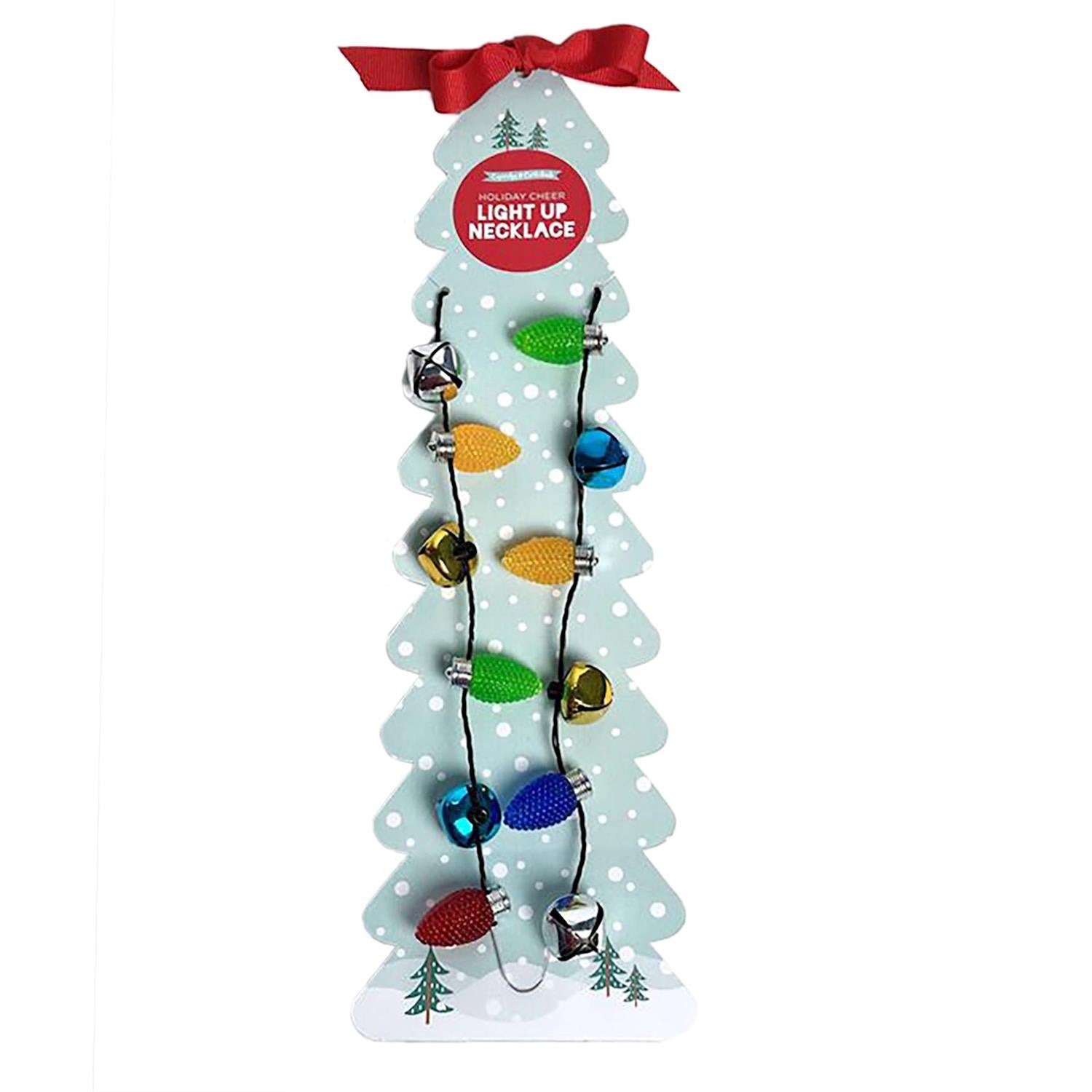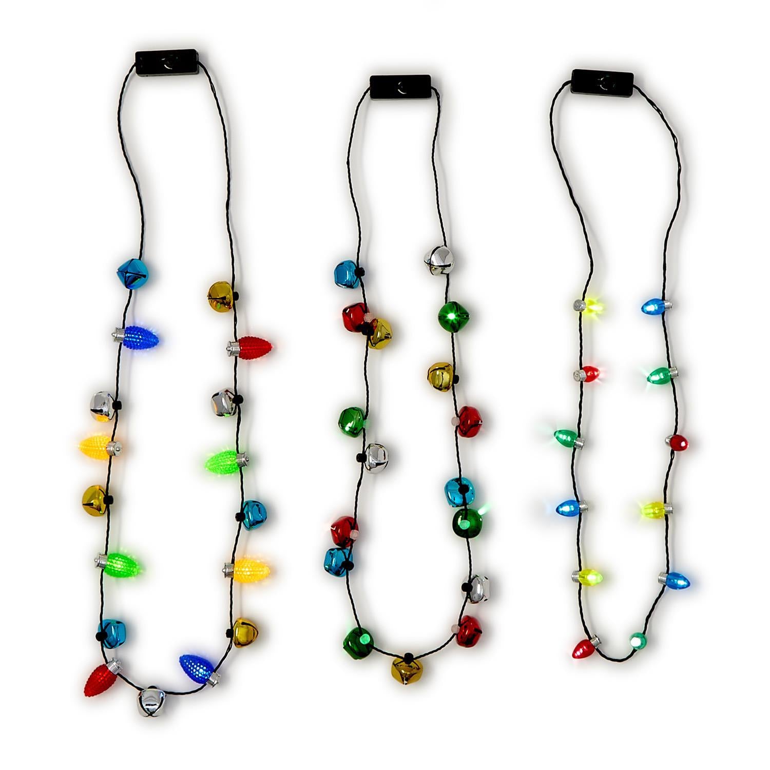 Our Light-Up Christmas Light Necklace is sure to be a best seller. The Christmas lights necklace is kid safe. The headband features four Christmas lights on it. The batteries are included to light the necklace up. Pull the tab to the activate light. The necklace is intended for ages 3+.