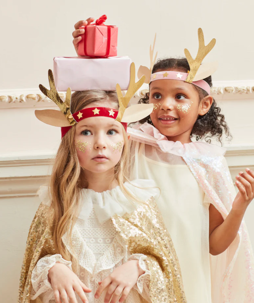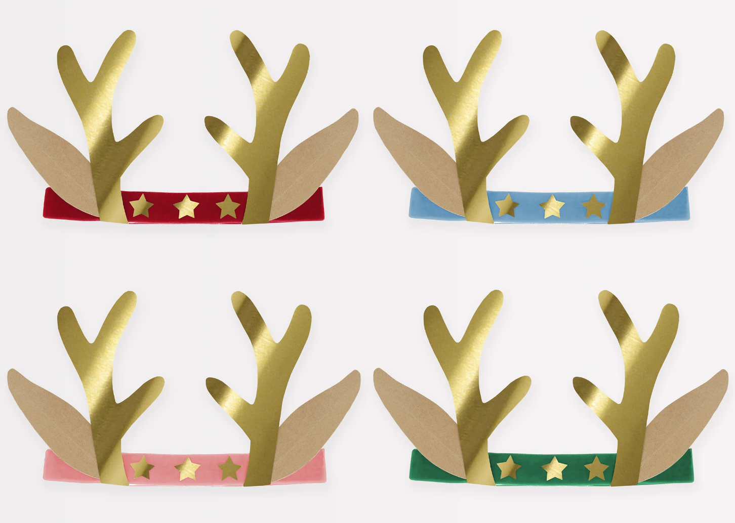 Why wear plain party hats when you, and your guests, can look reindeer remarkable in luxury velvet and gold foil? These fun antler headbands feature velvet elastic details, teamed with gold foil antlers and stars, and kraft paper ears. They're perfect for kids and adults.