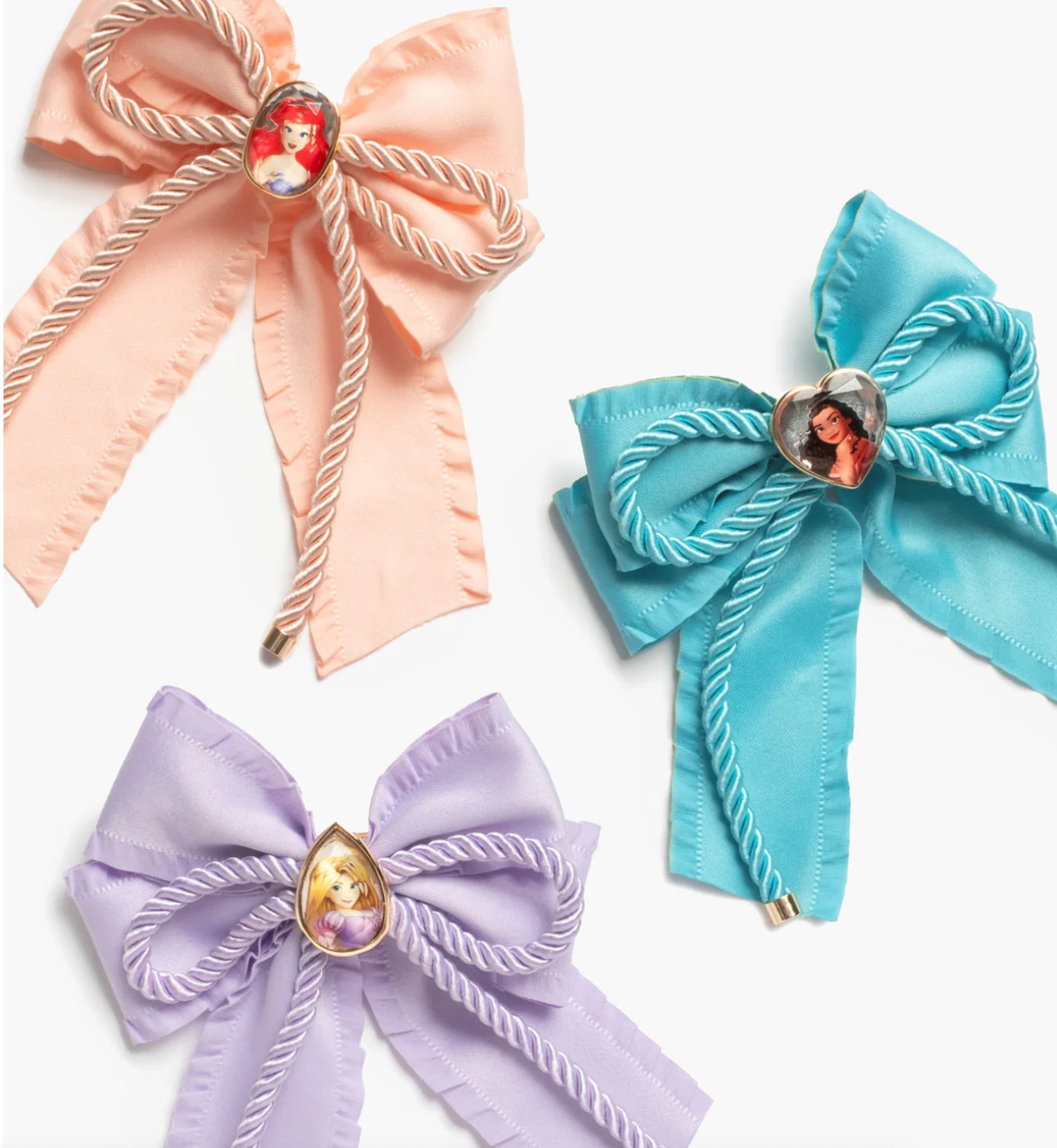 Elevate your hairstyle to royal status with our Disney Princess 3 Piece Hair Bows! These oversized bows feature whimsical cameos of Disney's Ariel, Moana, and Rapunzel, plus an adorably chic rope cord detail for that extra flair. Crafted with luxurious ribbon and designed to attract endless compliments wherever you go, these bows are perfect for adding a touch of Disney style to any hairstyle.