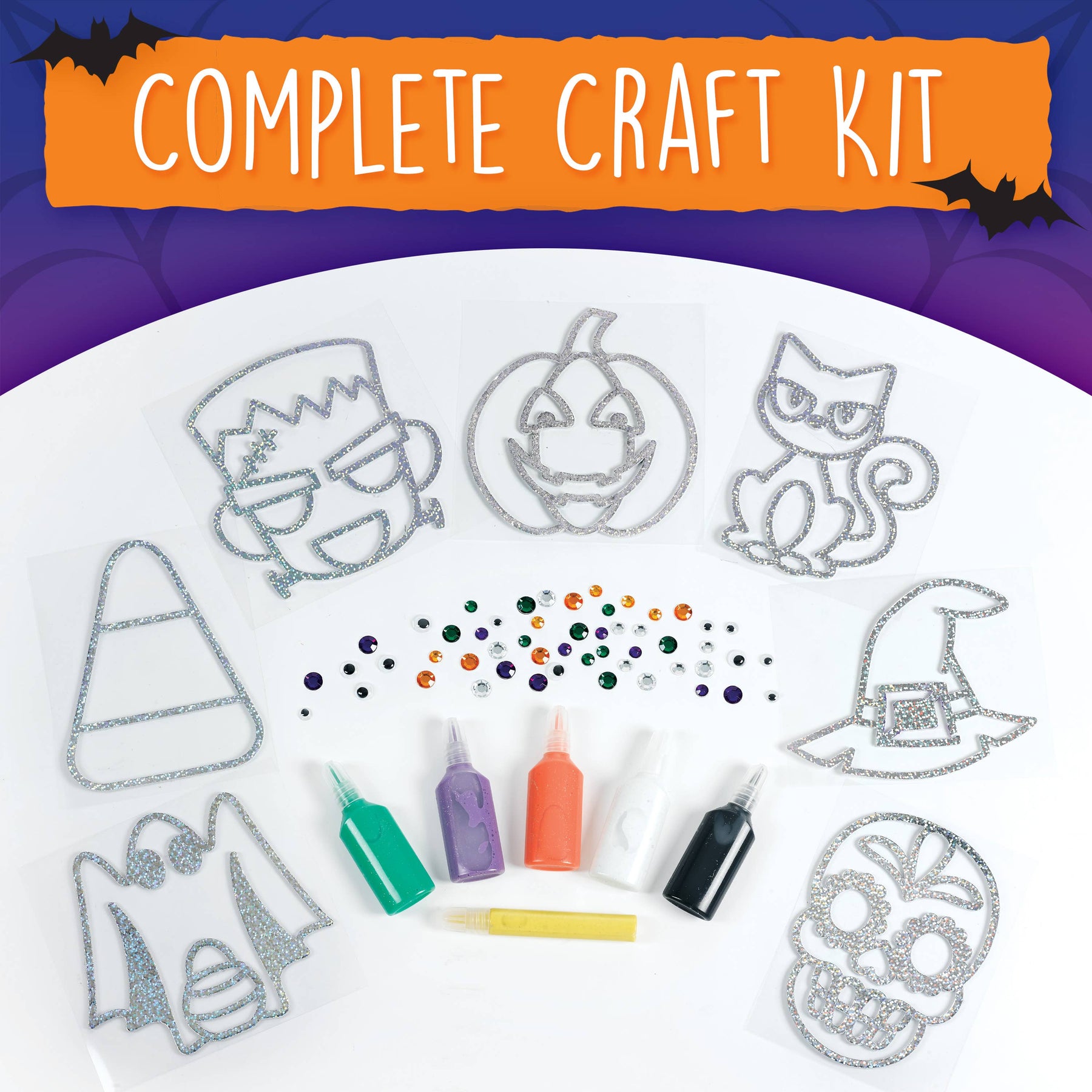 Make your own spooky Halloween window art! Create 7 cute designs: pumpkin, Frankenstein, skull, candy corn, ghost, witches hat and cat Comes with everything you need to make 7 Halloween themed window art designs! Includes 7 foam foil outlines, 4 colors of window paint, rhinestones and wiggly eyes Making window clings is simple! Just fill in the foam foil outlines with window paint, then add rhinestones and wiggly eyes. When dry, displayed your window art on any smooth glass surface. Just press it into place! You can display your Halloween Window Clings on any glass surface! The spooky Halloween decorations will look great on your windows and mirrors This open-ended craft activity allows for imagination and creativity to take the lead! Since 1976, Creativity for Kids has created innovative craft activity kits designed to stimulate and encourage natural creativity.