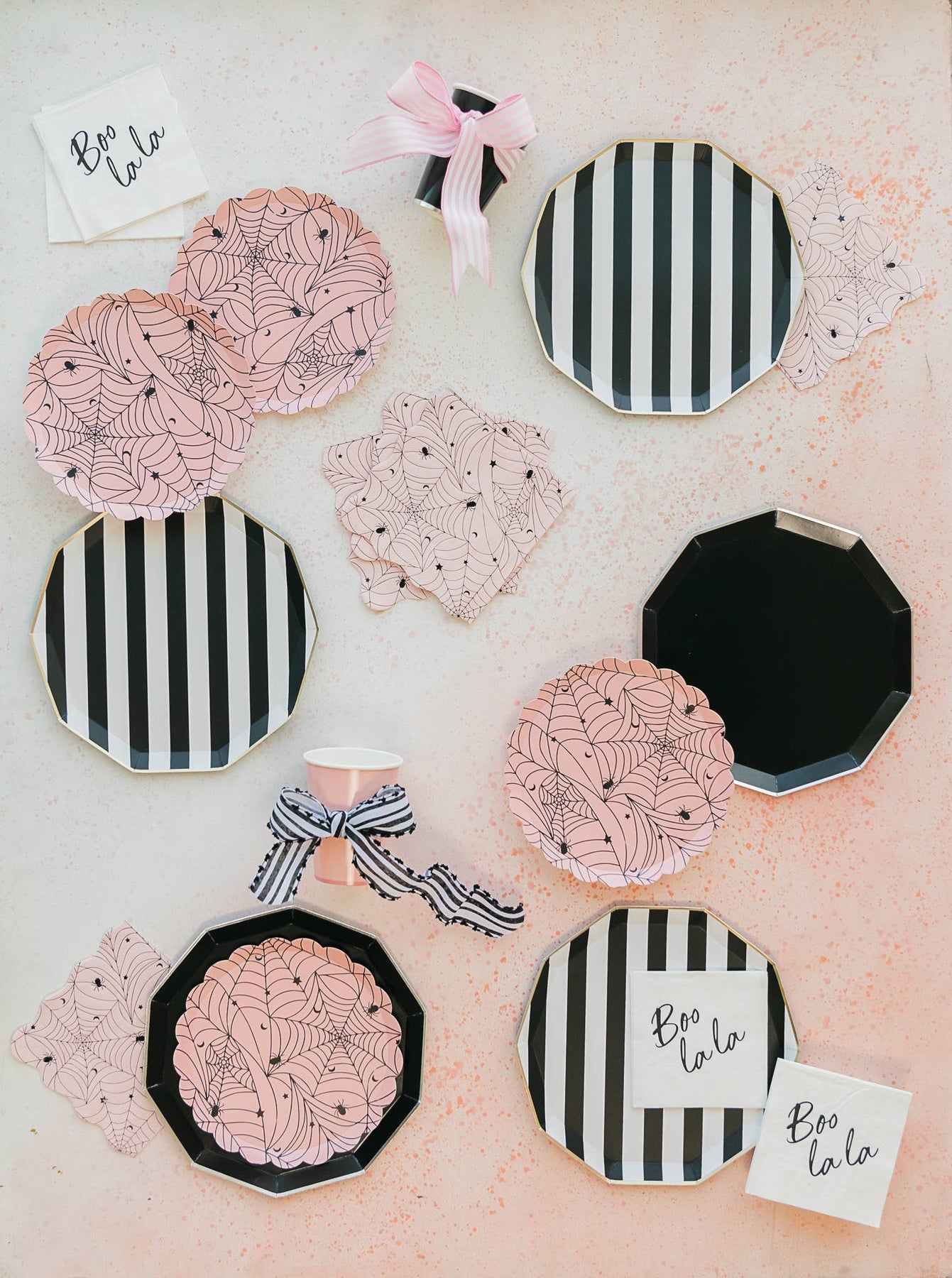Bows are still having a moment, so this paper garland is a must-have for a chic Halloween celebration. The bold black and white stripes, and soft black velvet ribbon, will give a striking touch indoors or out. Perfect for draping on the party table or mantel, hanging in the porch or windows, or swaying from trees. Plus, it's reusable to bring effortless elegance, and a hint of eerie charm, year after year.