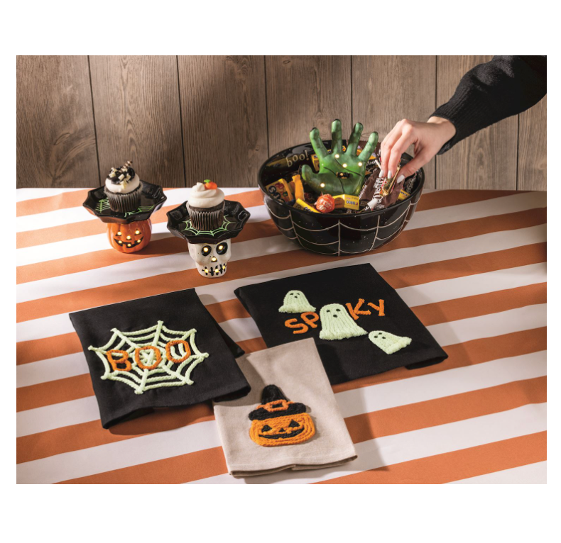 Orange Halloween Towel w/Black White Embroidered SPOOKY