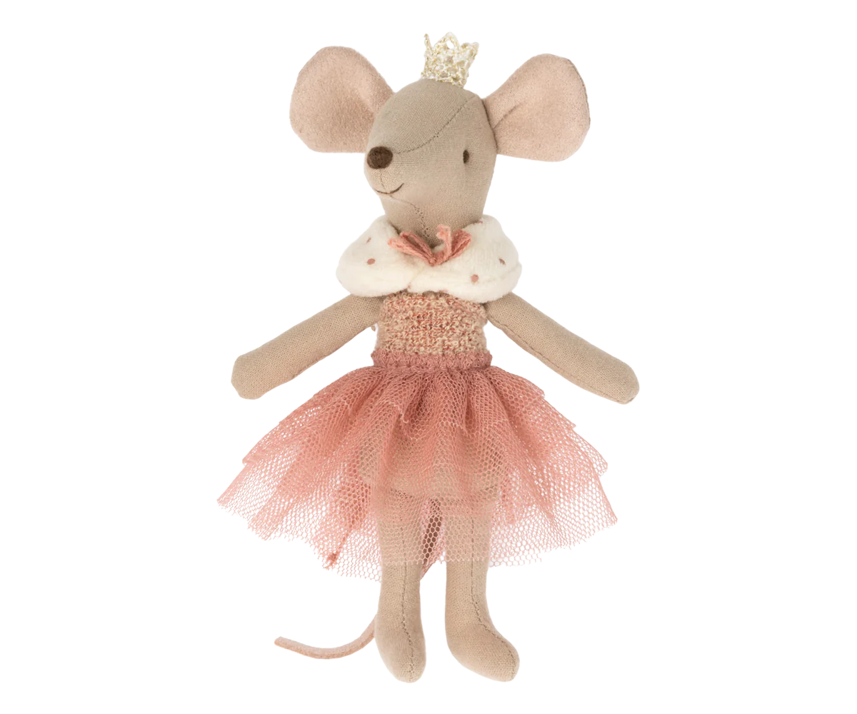The Royal family is now complete! This big sister princess comes dressed in her finest attire. She makes her royal debut with her lovely Royal family. The Princess is dressed in a rose-colored dress with a faux fur spotted capelet and a gold crown atop her head.