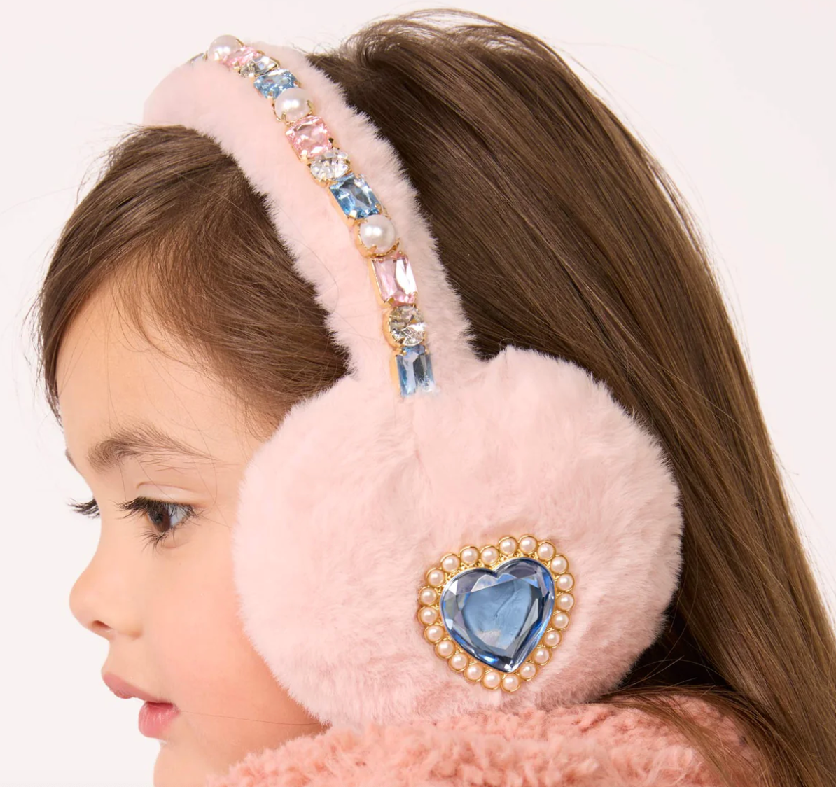 • Features sparkling heart-shaped gems along headband and on ear muffs for a fun, stylish touch