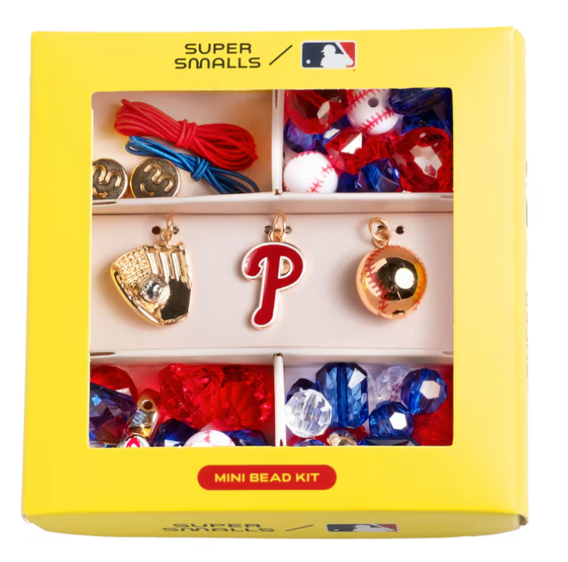 Let your young fan rep the Philadelphia Phillies in style with this Super Smalls Headband. This must-have accessory for game days is decked out in sparkling gem details and emblem charms featuring the team's logo. It's a fun and stylish way for your kiddo to show their Philadelphia Phillies spirit wherever they go.PRODUCT FEATURESSmall parts, not intended for children under 3 yearsImportedA fun way to show team spirit at the ballpark or beyondEmbellished with emblem charms featuring the team's logoDesigned to fit fans of all agesBrand: Super SmallsSparkling gem details add a touch of game-day glamSoft velvet headband for a comfy, stylish lookOfficially licensed