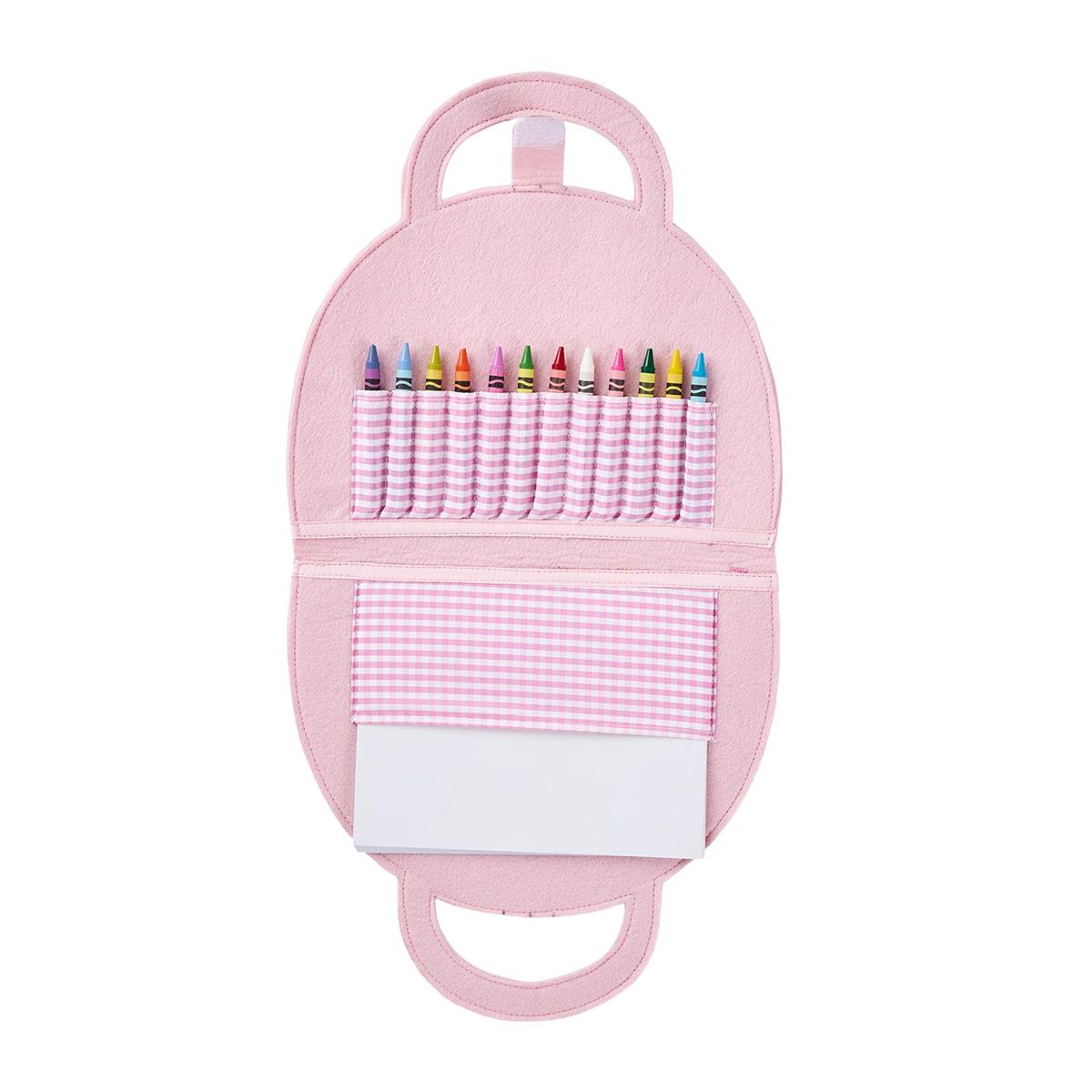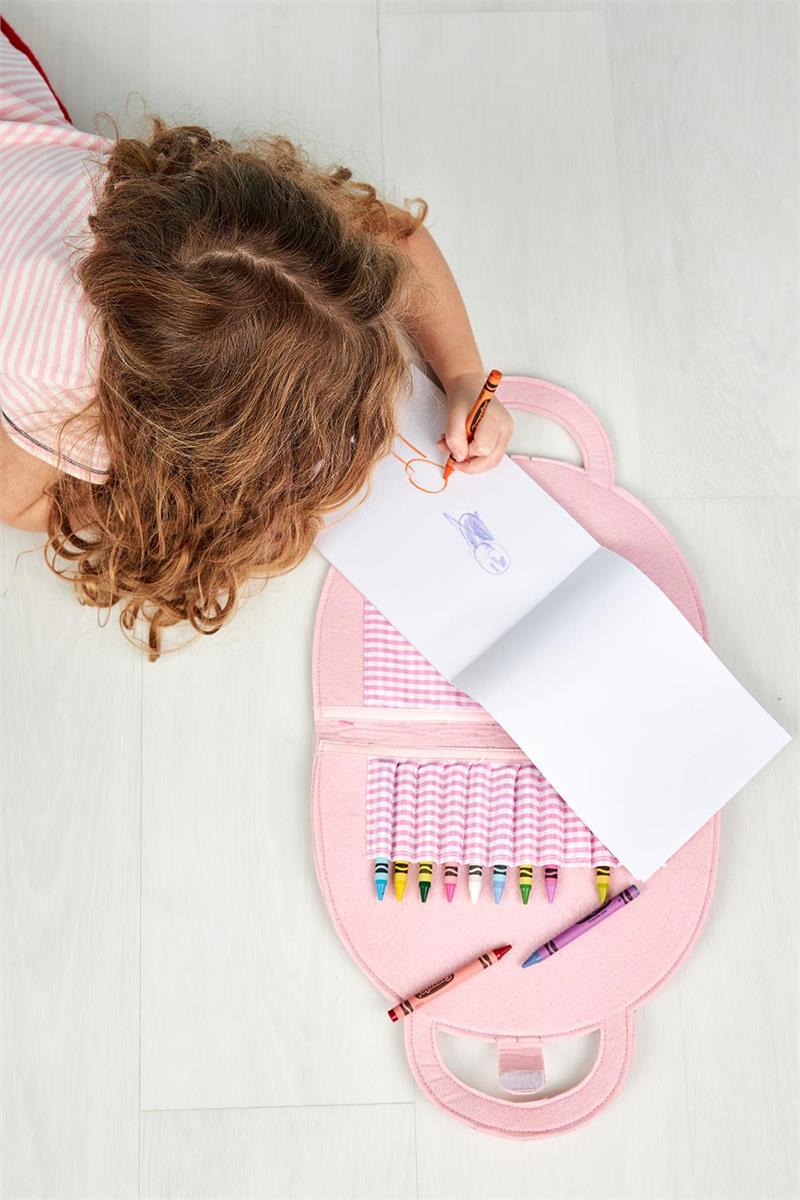 Felt portfolio includes drawing pad and 10 crayons. Perfect for on-the-go. Ages 3+.