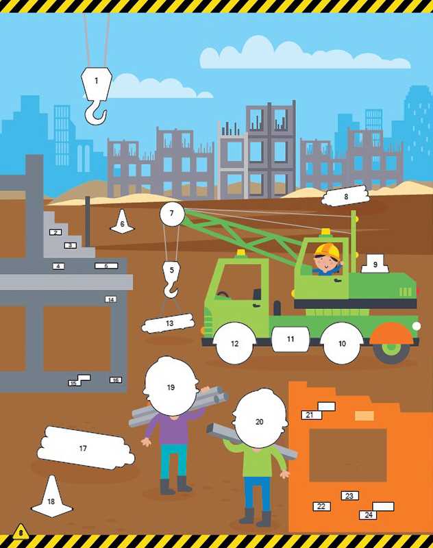 With over 400 stickers included, create unique 24 sticker art scenes. Color in detailed illustrations filled with construction workers and vehicles – it’s a busy day at the construction site!