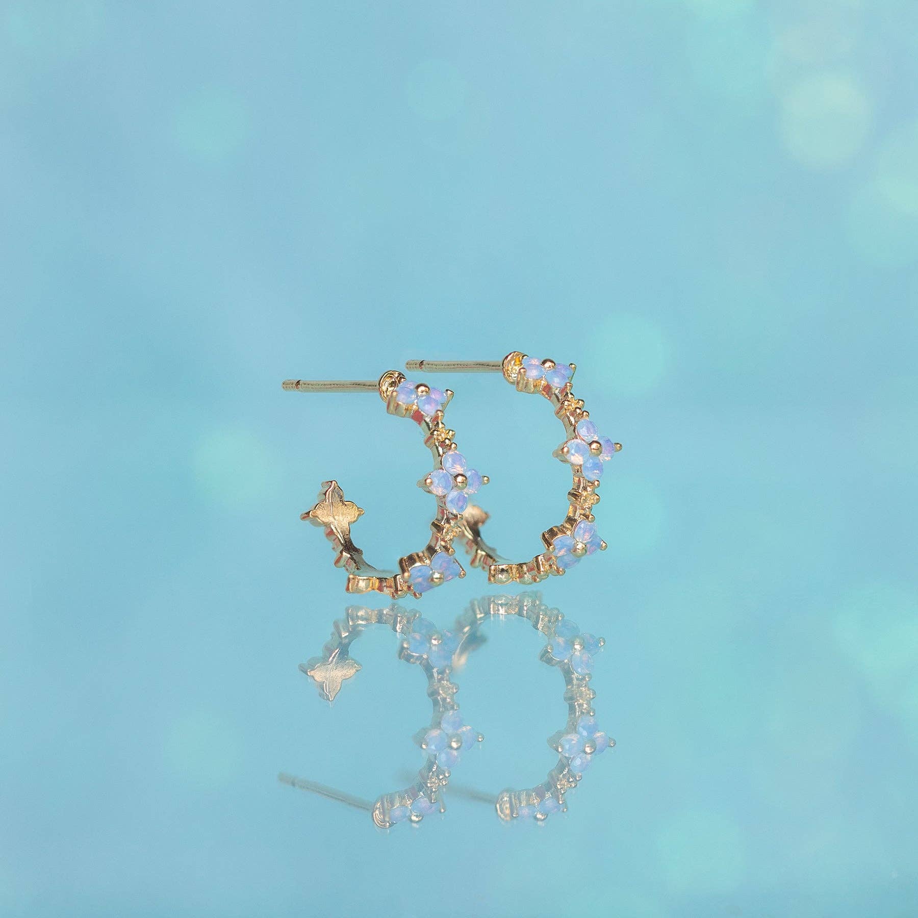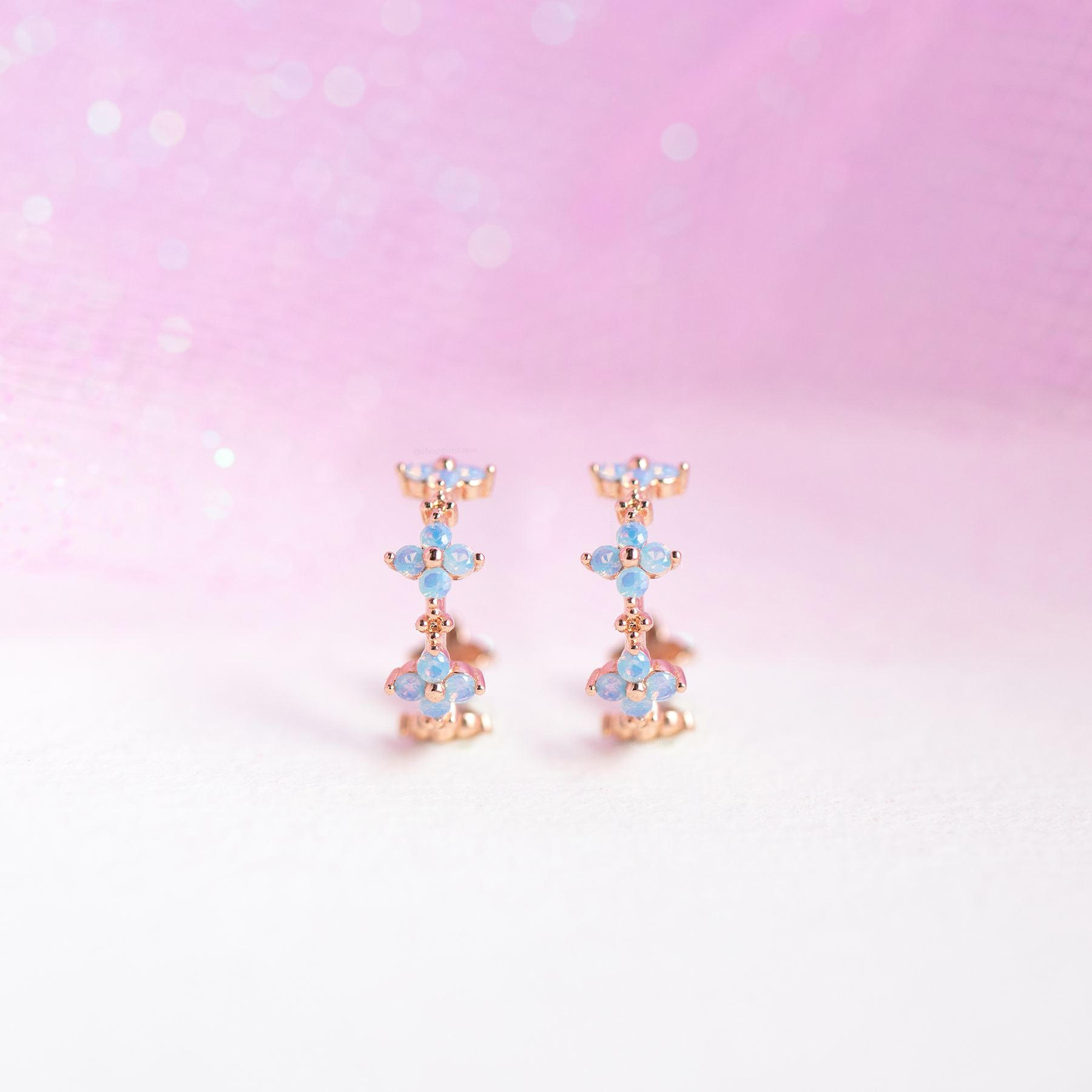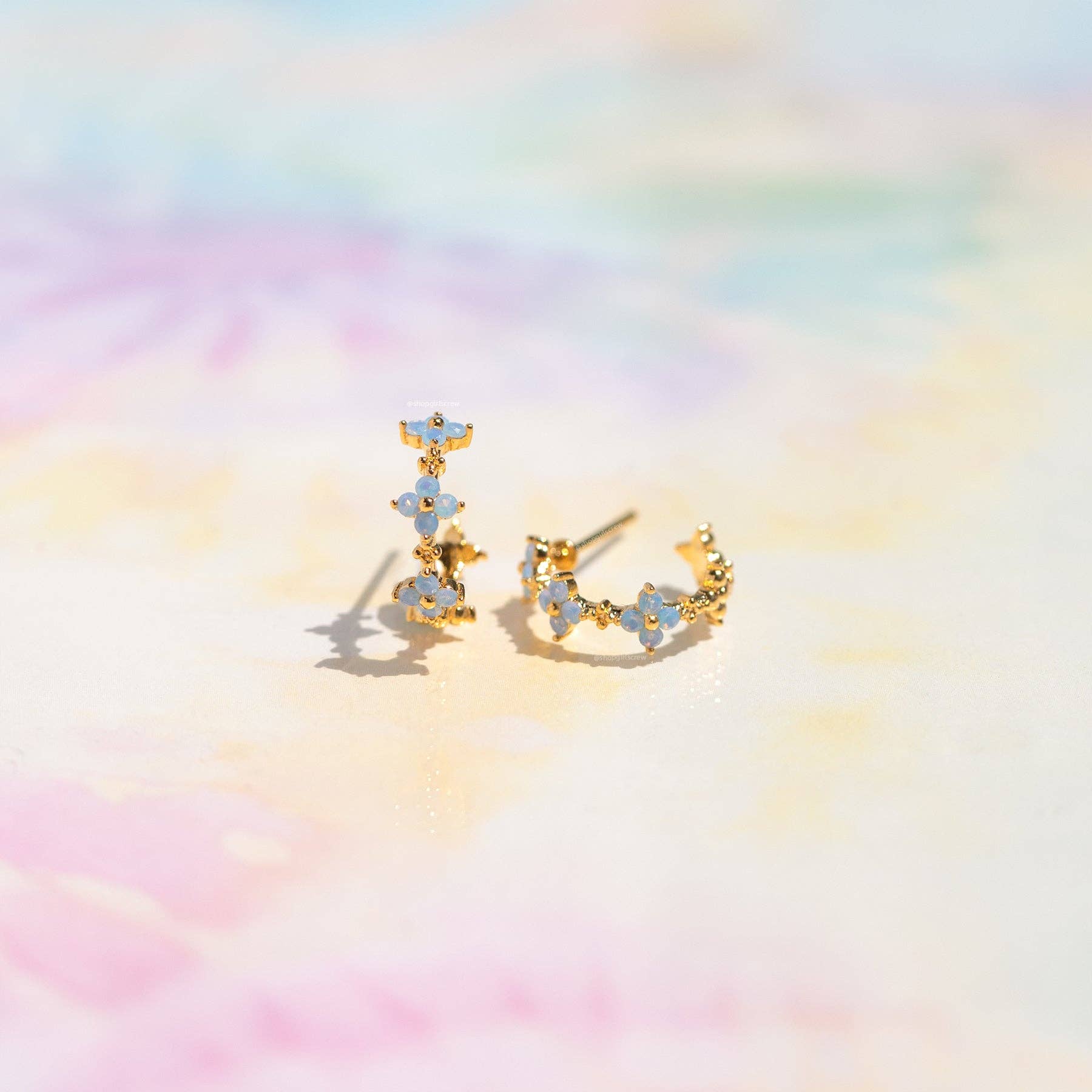 Take beauty wherever you go in the Blue Blossom Hoops. This design has become a GC favorite and is here to stay! You'll get lost in the stunning and calming baby blue hues of the cubic zirconia stones.