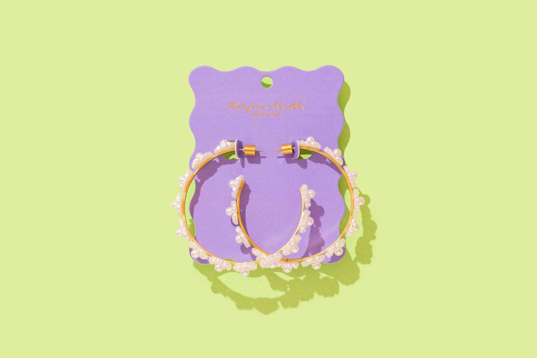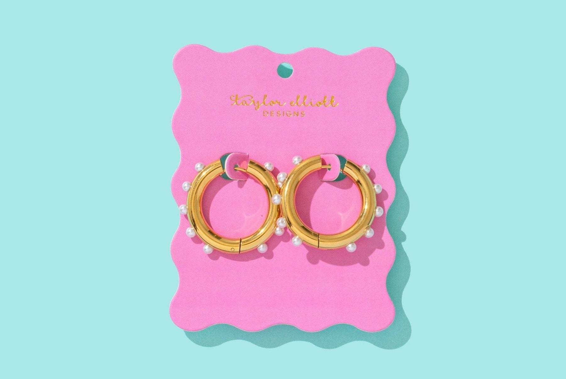 Infuse your store with a touch of sparkle with our exquisite 14k gold-plated and pearl hoop earrings! These chic hoops blend sophistication and charm, sure to captivate every fashion enthusiast. Whether your customers want to add a bit of glam to their daily ensemble or find the perfect gift, these hoop earrings are an essential addition. Especially ideal for summer adventures and gearing up for back-to-school routines.