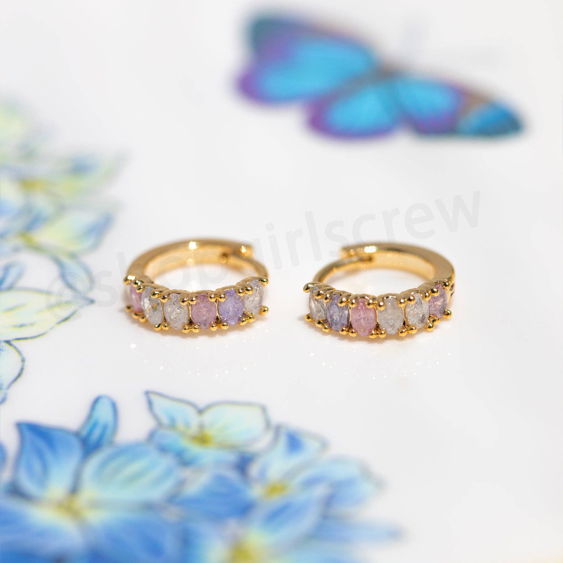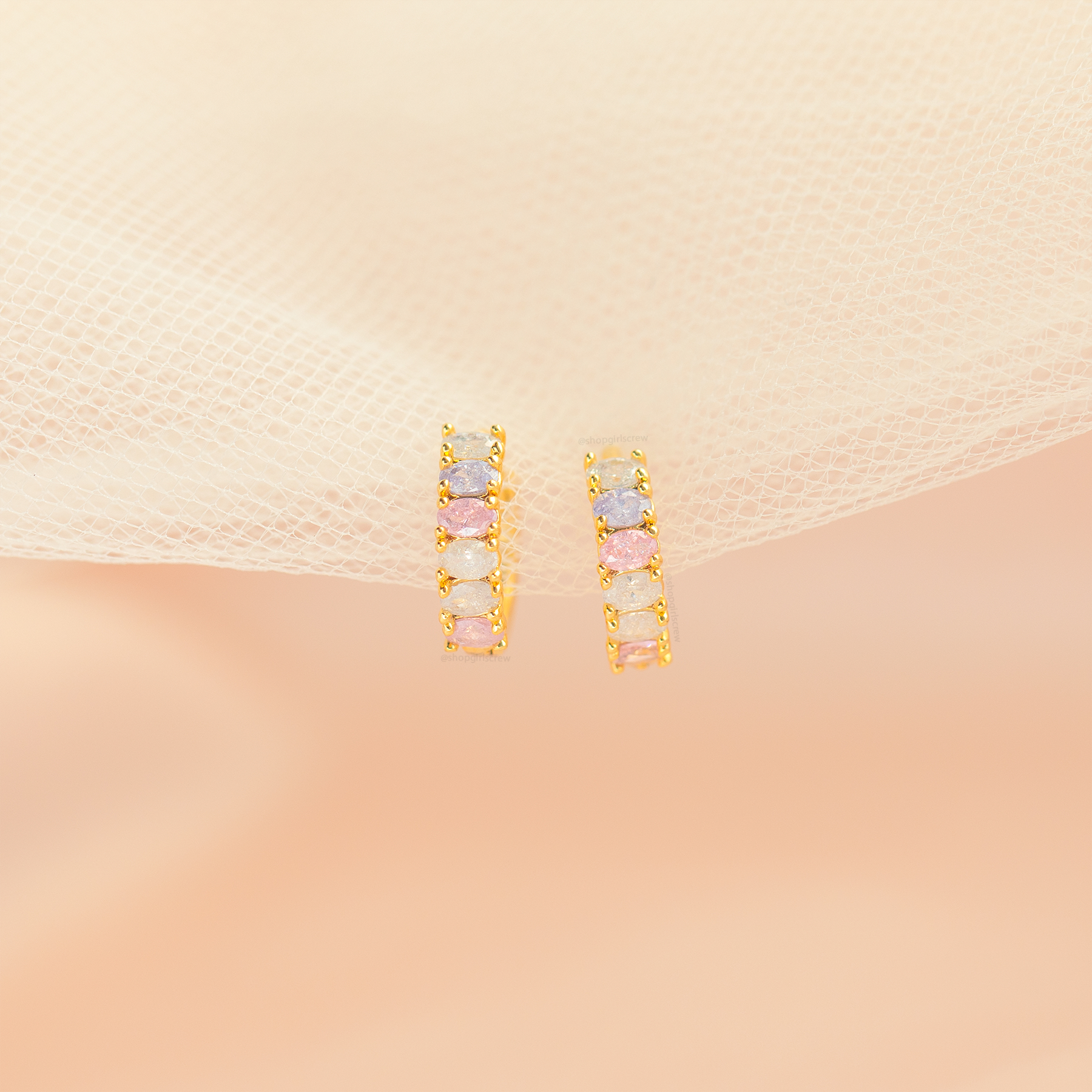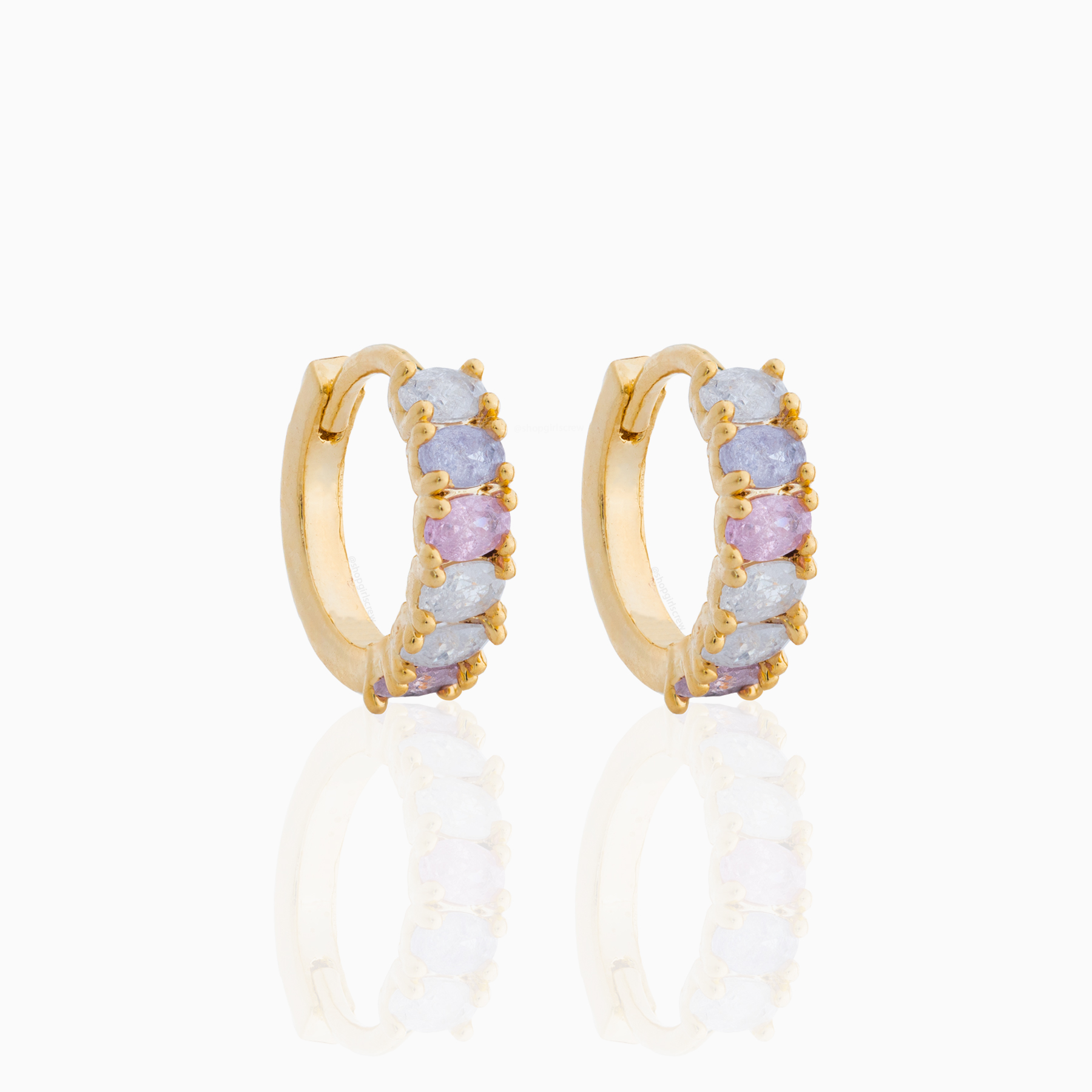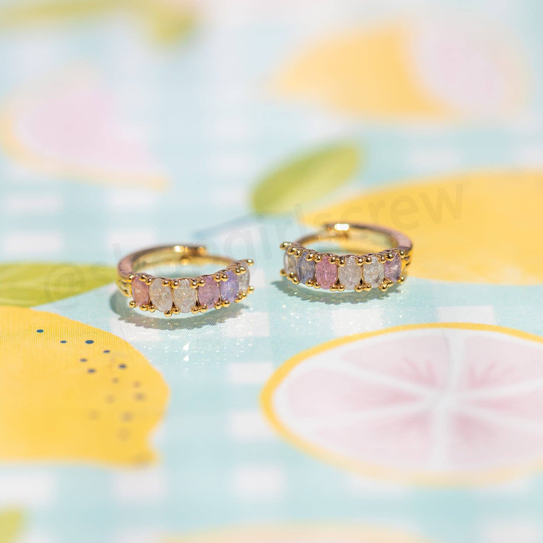 Huggie Earrings - Gold-Plated w/ Mini Colorful Gems - Alex