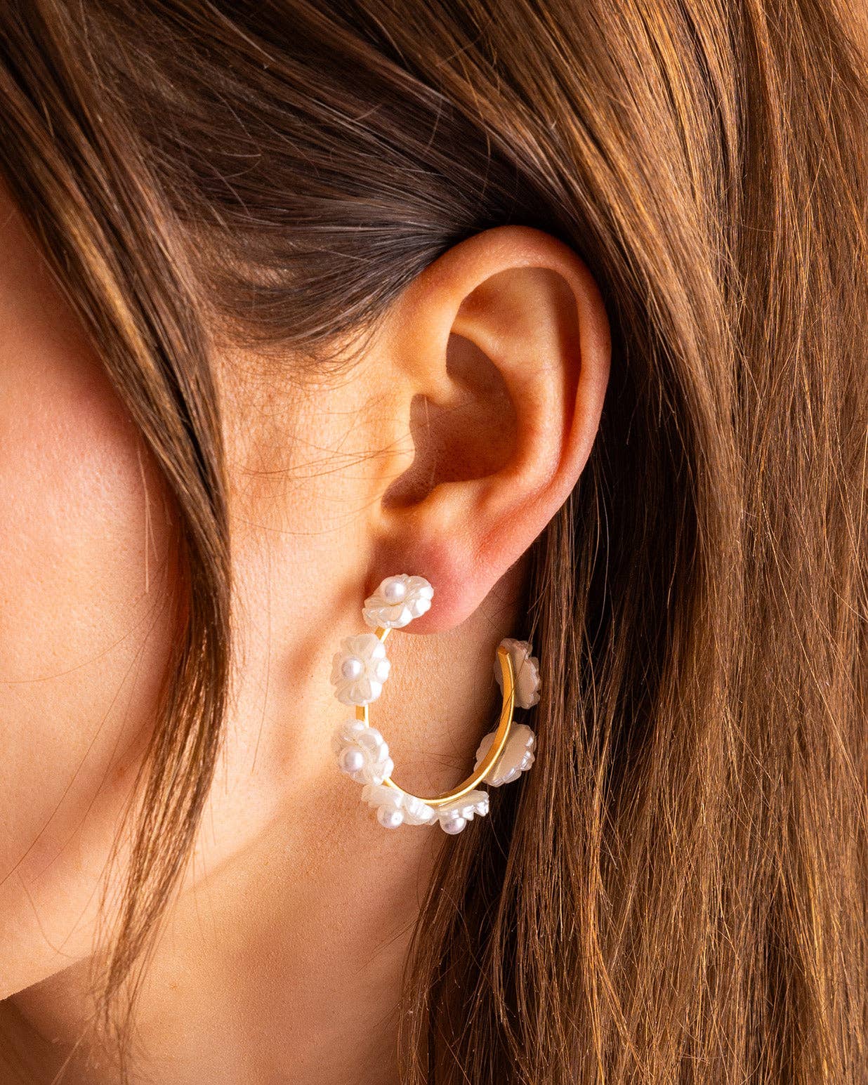 Hoop Earrings - Large - Gold-Plated w/Pearl Flowers - Amelia