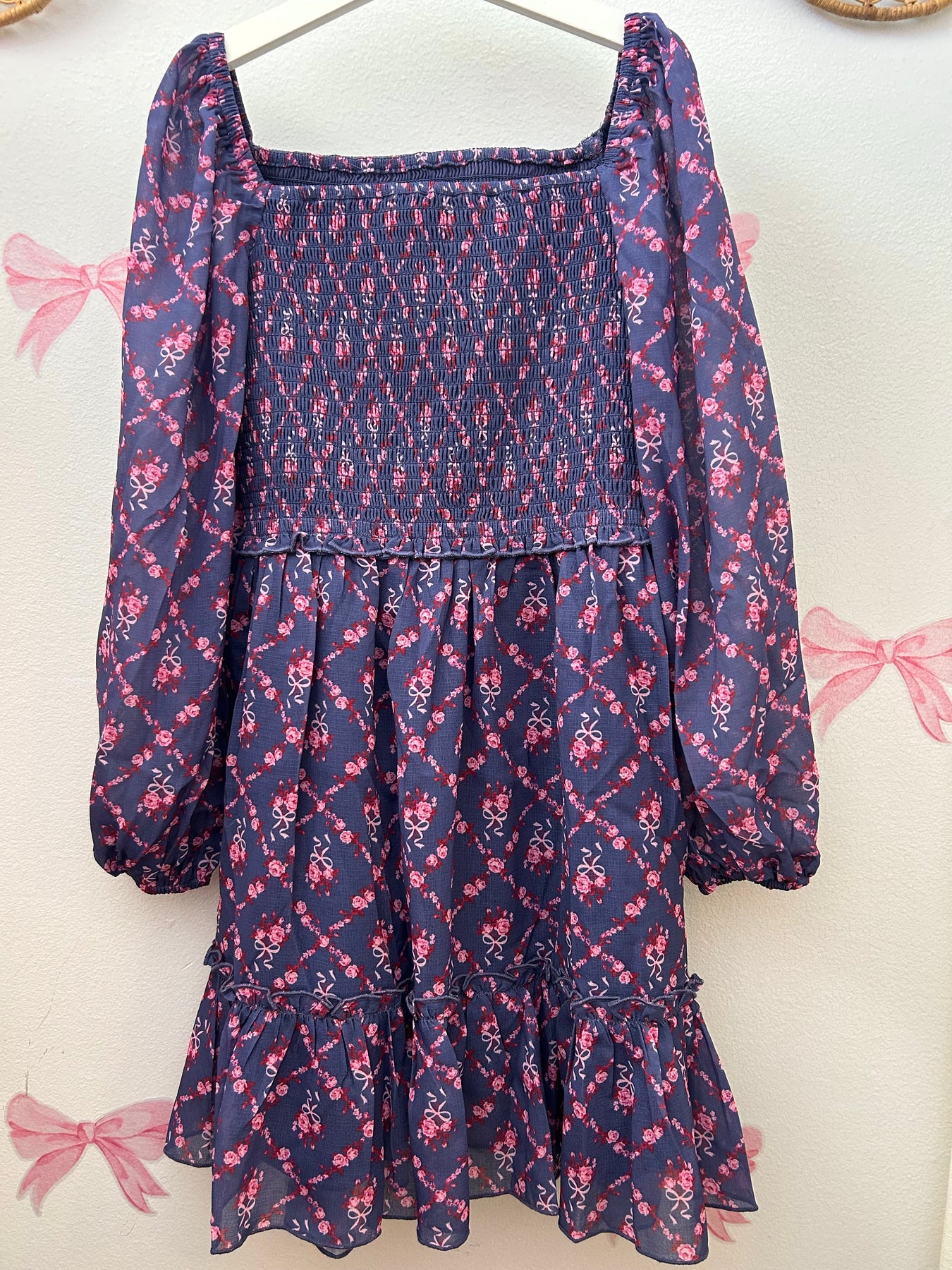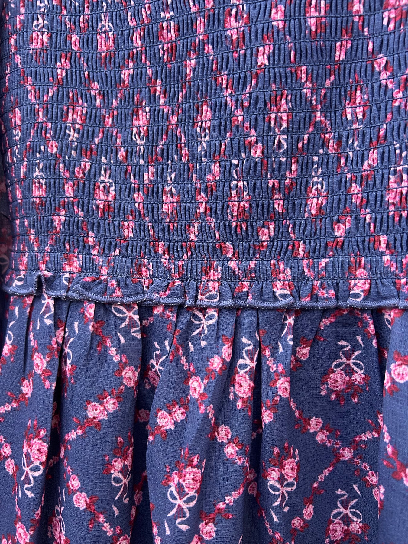 Lola Satin Smocked Ruffle Dress - Navy Rose | Theme NYC