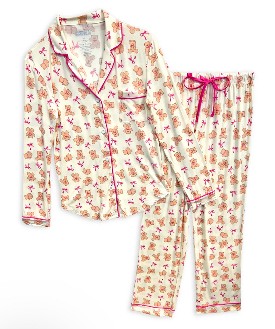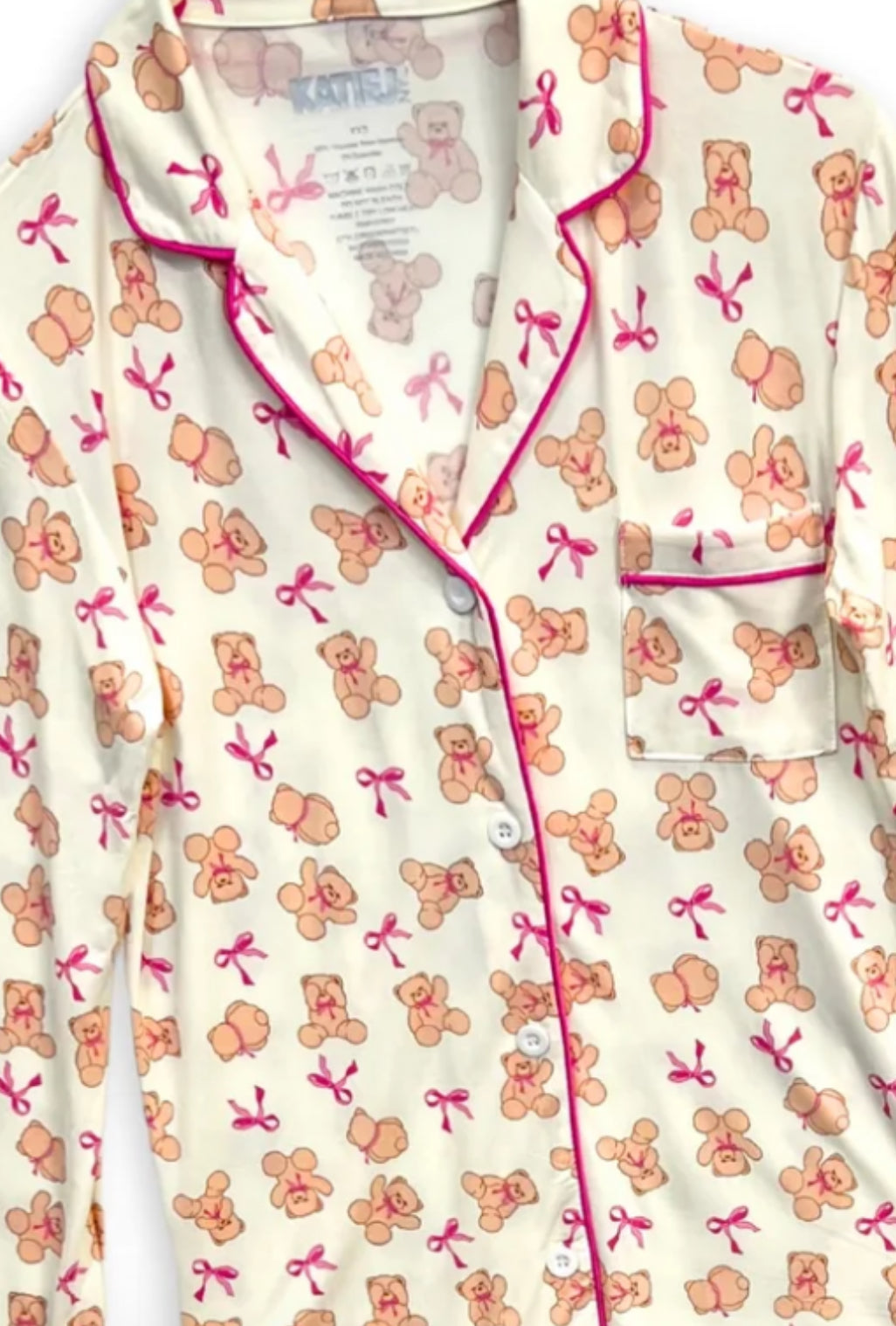 How sweet is Charli. Prettiest velour pink with beautiful ribbons that tie at the shoulder. Its so soft and comfortable too! Style tip: wear it and dance!