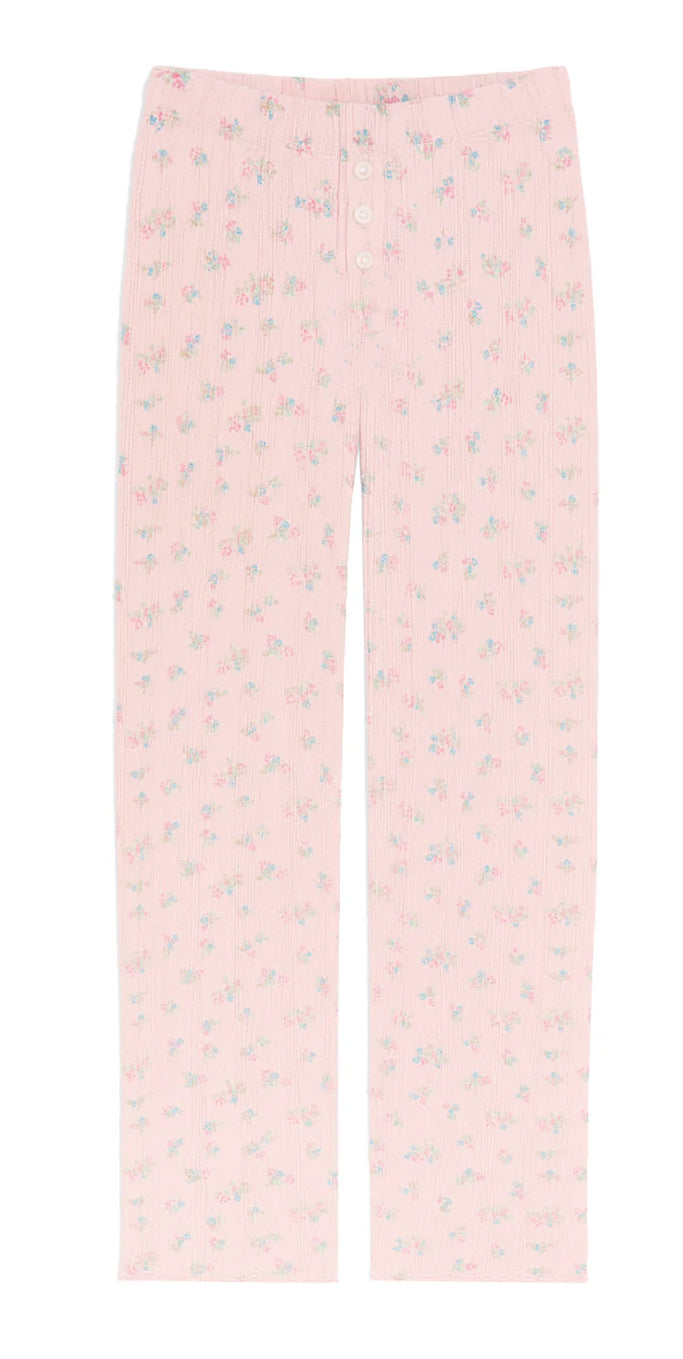 Introducing the Marina Pants in Perfect pink: the perfect blend of comfort and charm! These delightful pants feature a playful floral pattern and a relaxed fit that makes them a joy to wear. Pair them with the matching Marina Top for a coordinated look that's effortlessly cute and cozy. Ideal for lounging or light outings, these pants will have you feeling as lovely as you look!