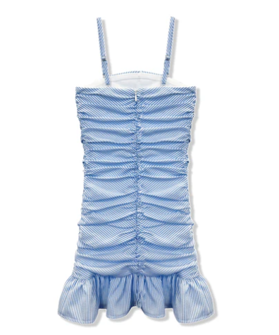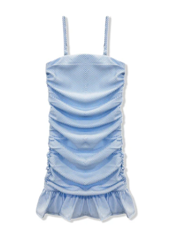 The Indigo Dress is your perfect mix of cute and trendy. Featuring bold blue-and-white stripes, flattering ruching, and a flirty ruffle hem, this dress is ready to turn heads wherever you go. Girly, bold, and totally fun!