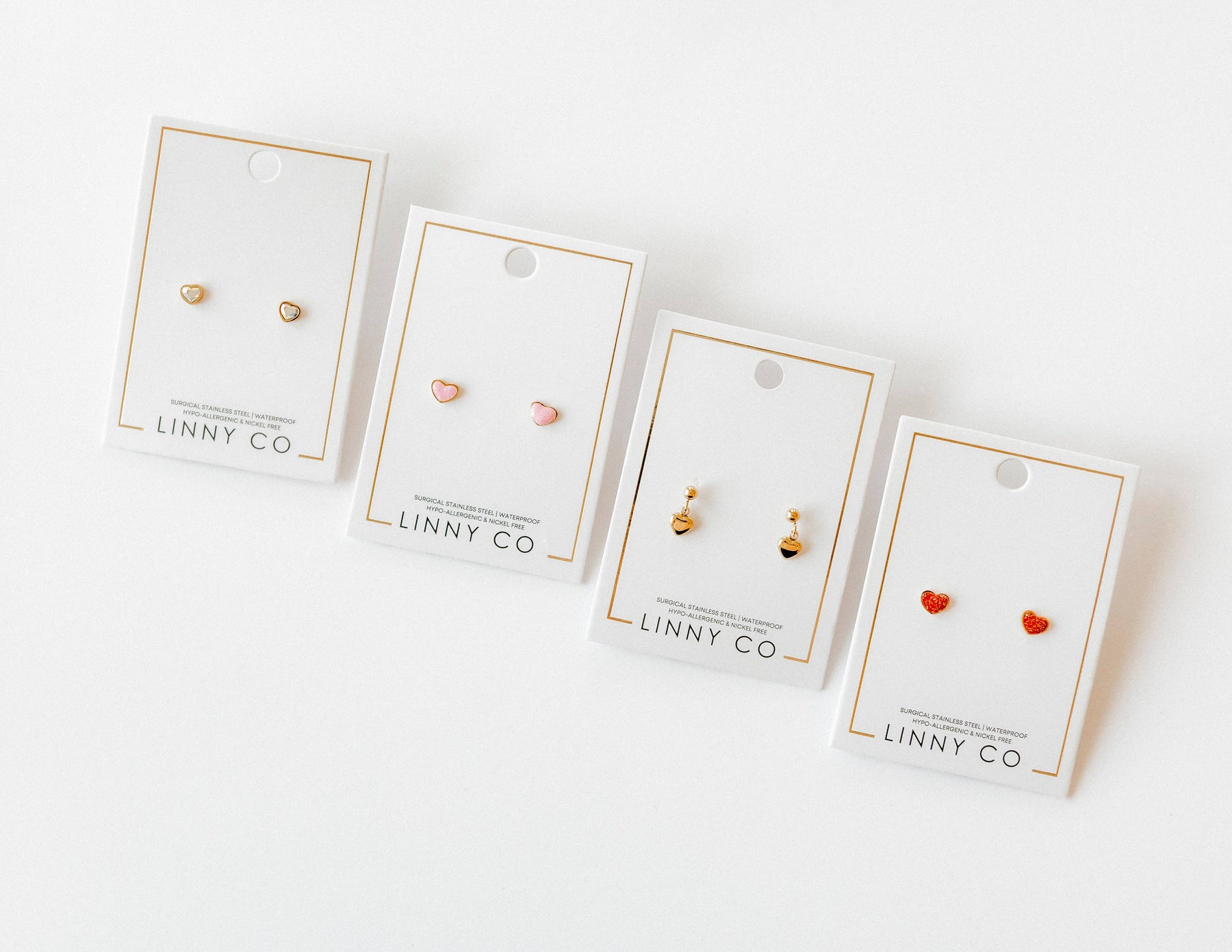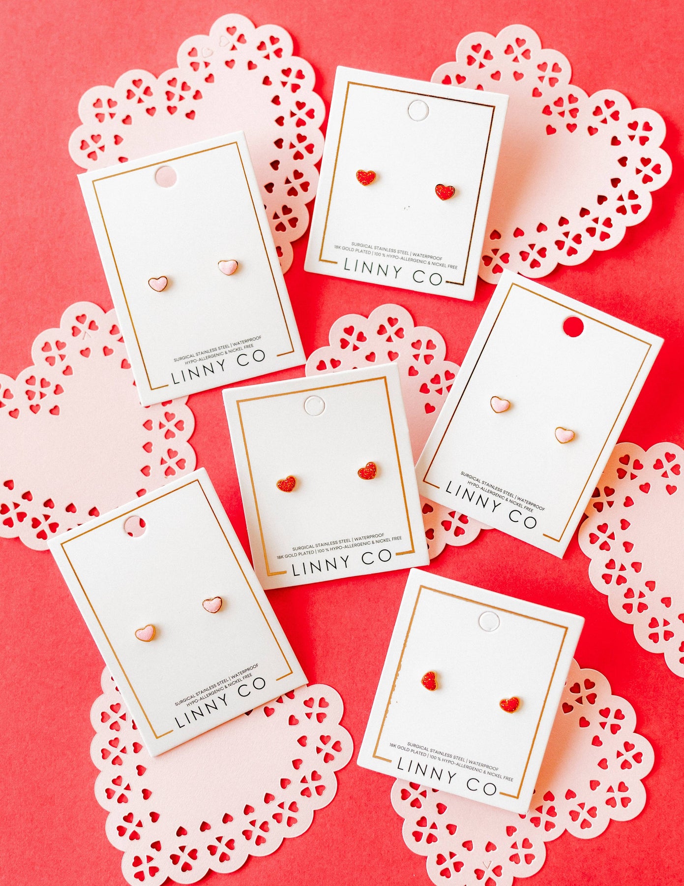 Show your ears some love with our beautifully hand-crafted heart earrings. Available in 2 vibrant colors, each pair is packaged on a beautiful, heart-print backer card, making it the perfect gift for you or a loved one.