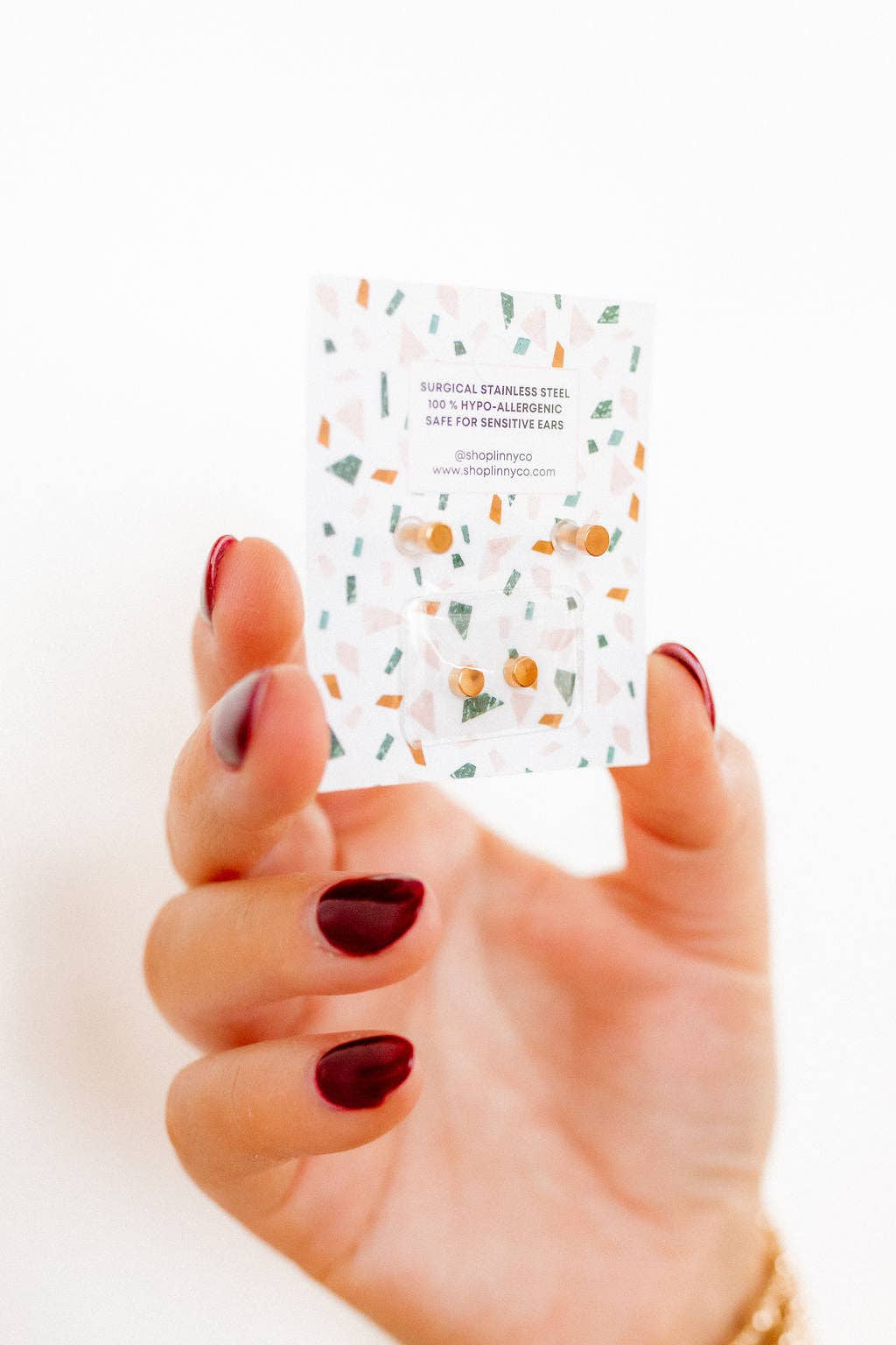 Express your love and style with the Millie Heart Drop Stud Earrings. These 11mm studs feature a tiny, glossy gold heart that dangles gracefully, adding a charming and feminine accent to any look. Made from 100% surgical-grade stainless steel, these earrings are lightweight, durable, and hypoallergenic, making them perfect for sensitive ears. The secure screwback design ensures a snug fit.