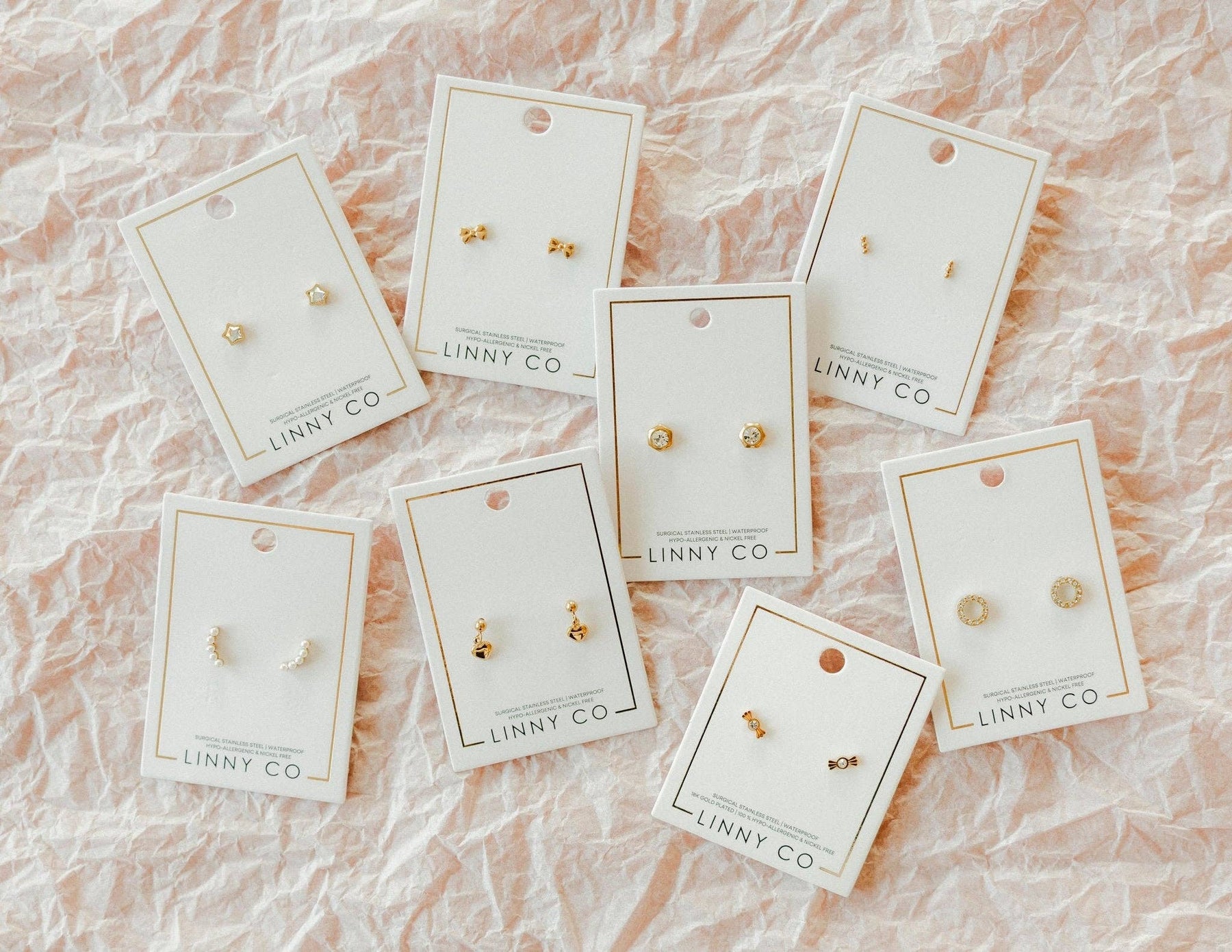 Waterproof and versatile, these white heart earrings pair beautifully with huggie earrings for a layered, stylish look. Perfect for adding a delicate pop of sparkle to any outfit.