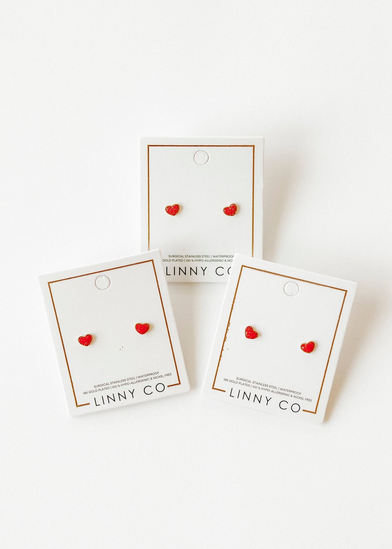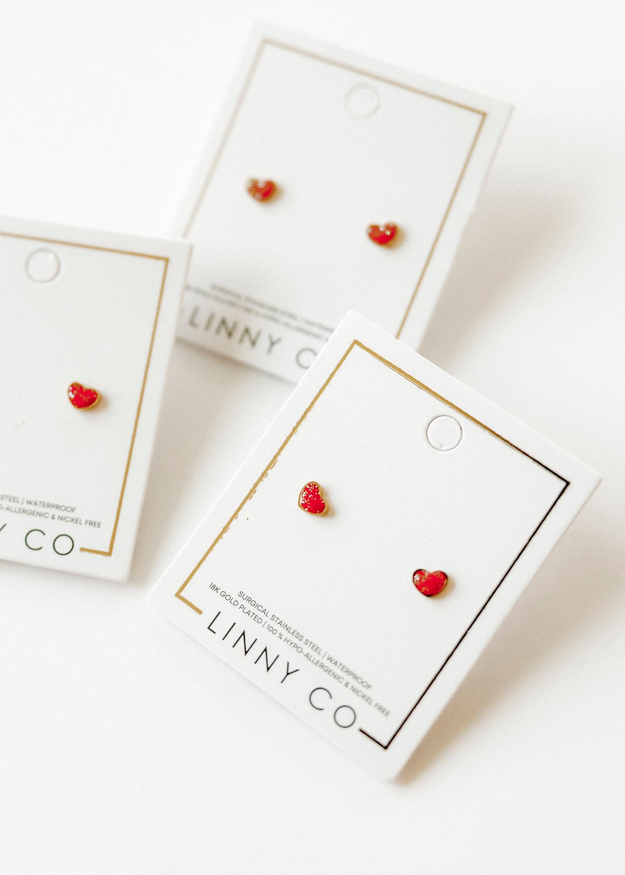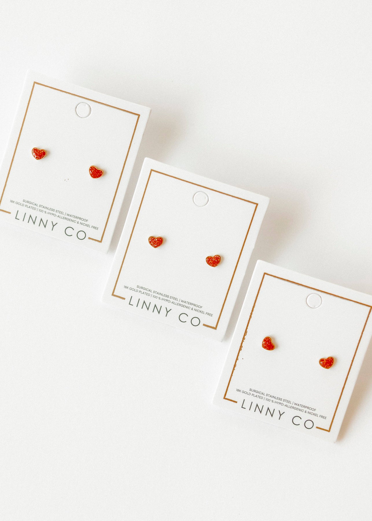 Just what you need - a bold pop of color with the Nora Heart Red Stud Earrings. These 7mm enamel-coated red heart studs are beautifully accented with sparkles, creating a vibrant and eye-catching design. Made from 100% surgical-grade stainless steel, these earrings are lightweight, durable, and hypoallergenic, perfect for sensitive ears. The secure screwback design ensures a snug fit, making them ideal for everyday wear.