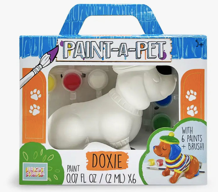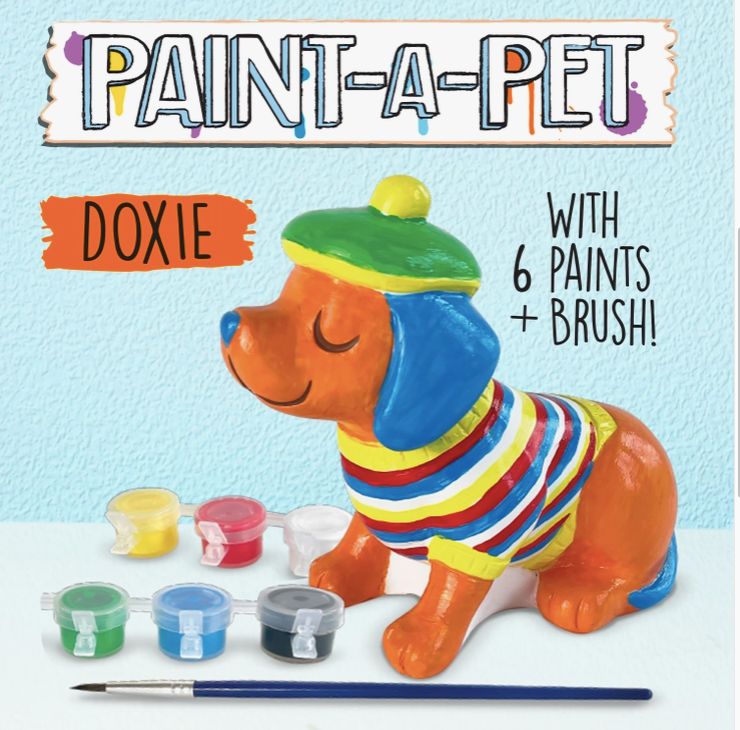 • Paint an adorable plaster pet with 6 paints and a brush.