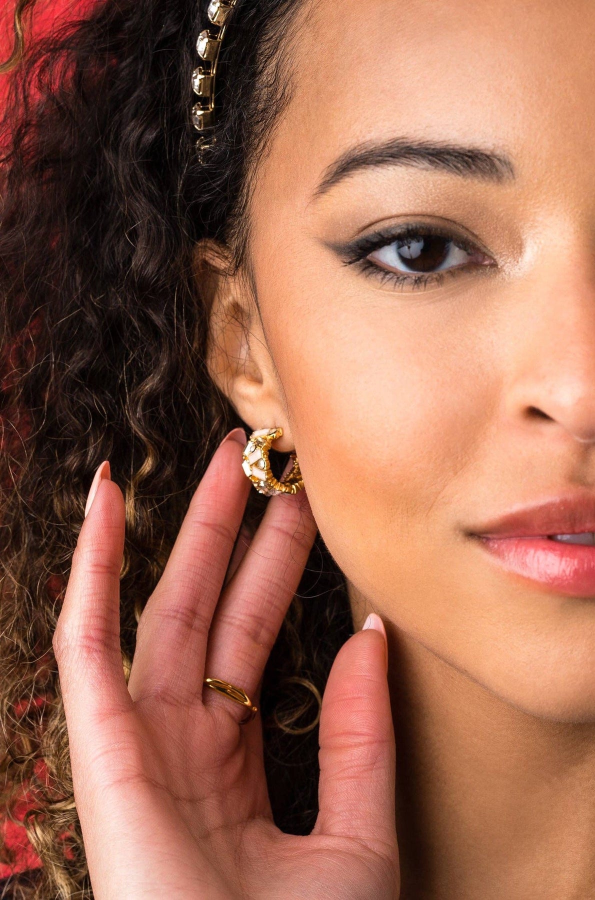Don't be afraid to add a little glam! This crystal studded mini hoop pairs well with a little black dress or classic jumpsuit for a holiday party.