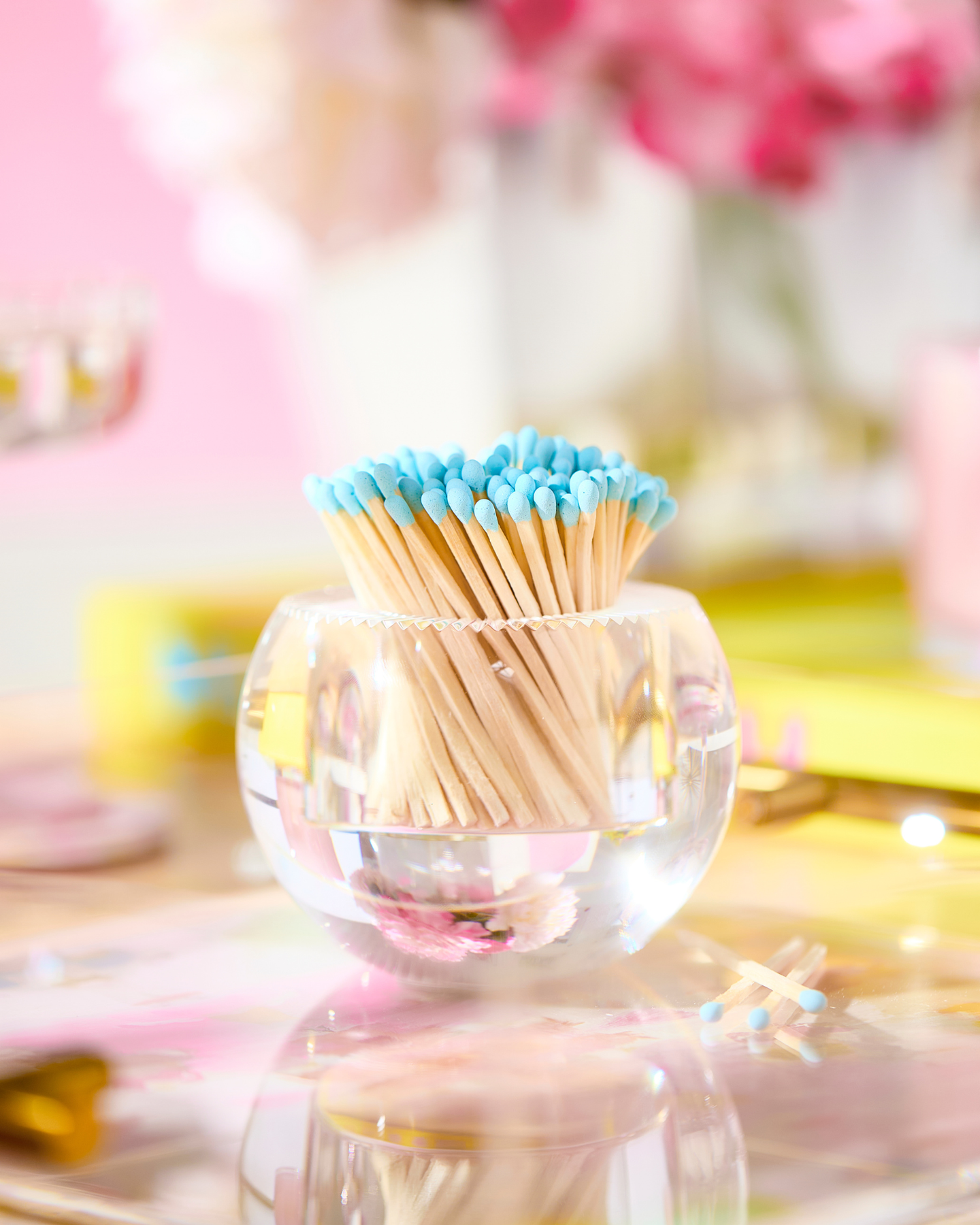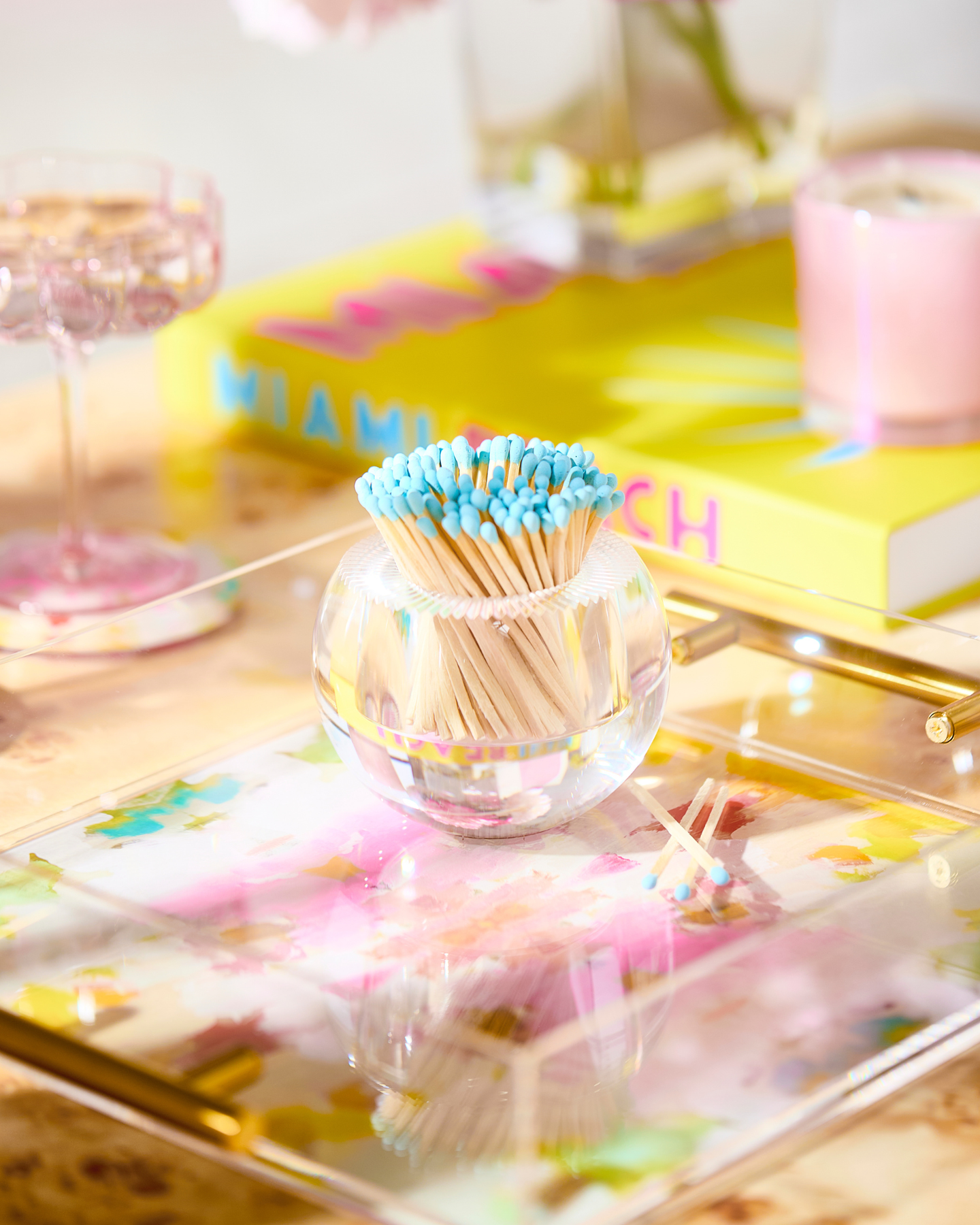 Get fired up with our Acrylic Match Striker! This acrylic match strike is the perfect accessory for your coffee table, desk, or any space that could use a little flair. It features a strike pad on the bottom and comes with 140 matches. Keep this baby ready for any occasion, let's get lit! -3.5'' Diam x 3'' H -Includes 140 matches (match refills also available) -Features a match strike pad on bottom for igniting matches -Wipe clean with damp cloth