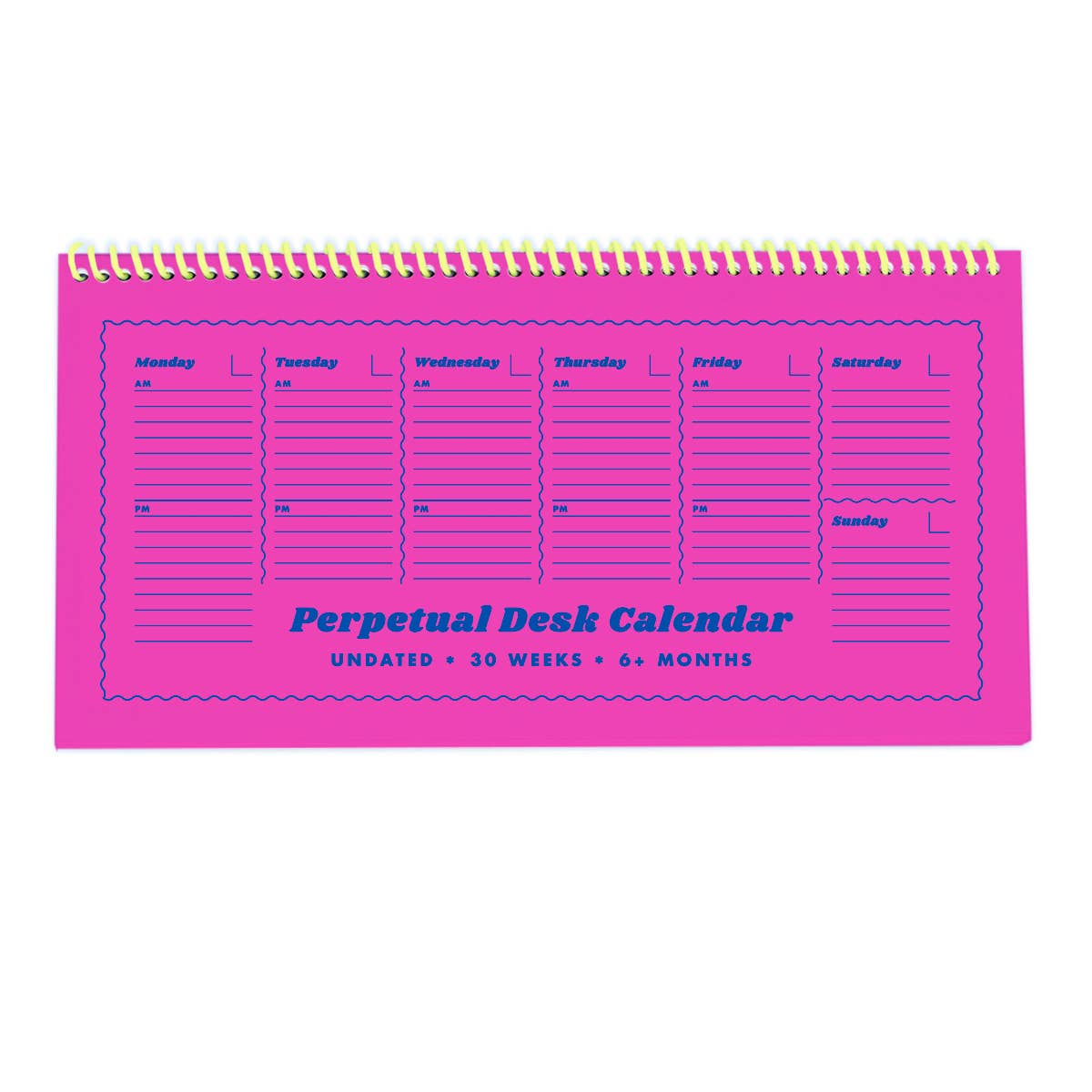 Sized to fit just above your keyboard, this spiral bound undated calendar will last 30 weeks or 6+ months. Going on vacation? Skip a week! Start at any month or date - it never expires! Layout is great for to do lists or short scheduling notes.