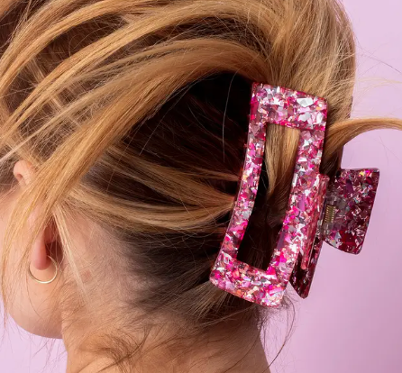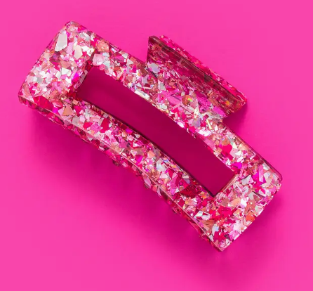Introduce a pop of fun to your store with our best-selling claw clips! Discover our Confetti Claw Clips, available in five vibrant colors, each adorned with shimmering confetti. Ideal for everyday wear and as birthday gifts, these clips are the must-have accessory for summer and back-to-school seasons. Details * Size: 4" x 1.75" * Pink and silver hologram mix confetti * Claw clip material is acrylic