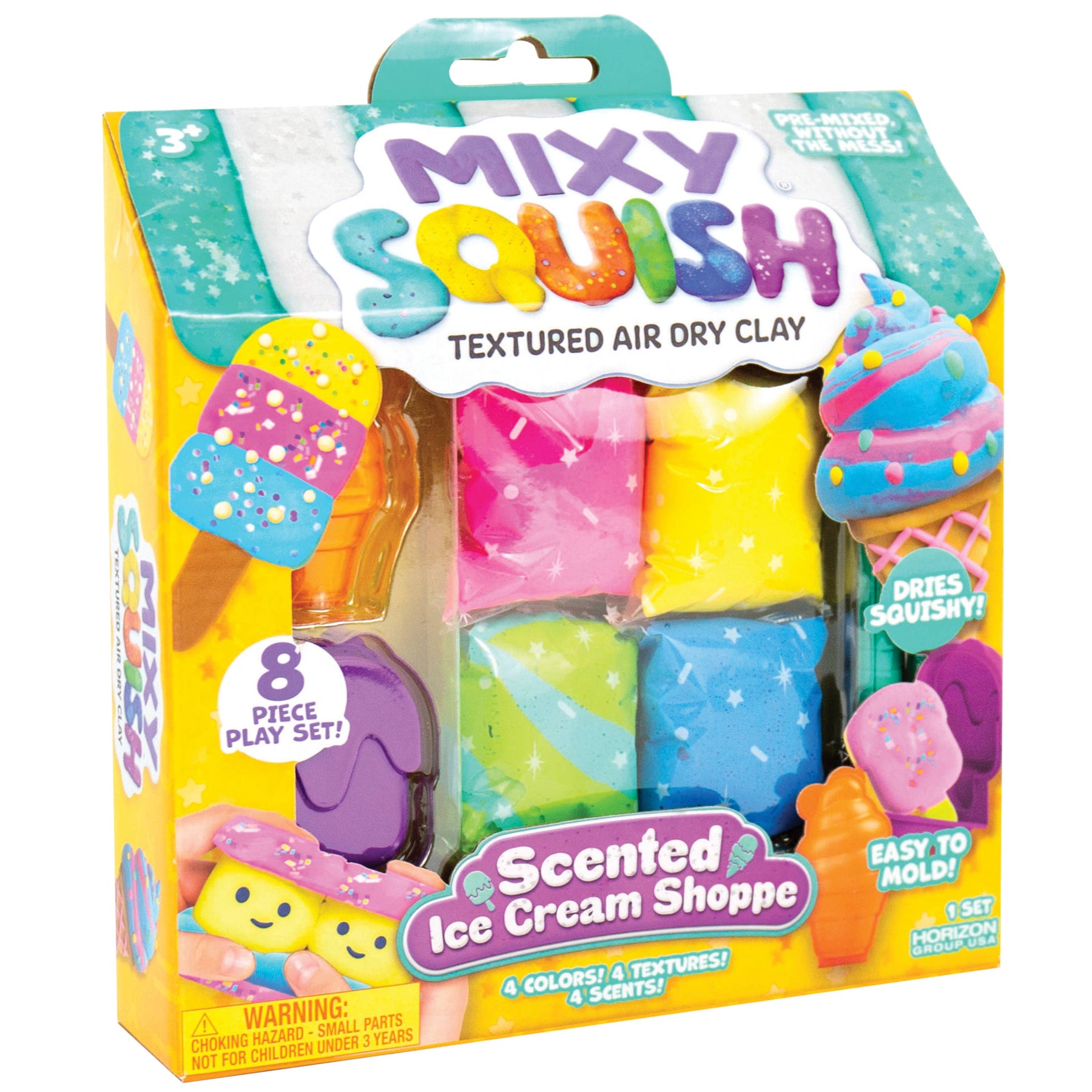 Transform airy, fluffy clay into a world of squishy, sweet, textured fun with the Mixy Squish® Scented Ice Cream Shoppe!