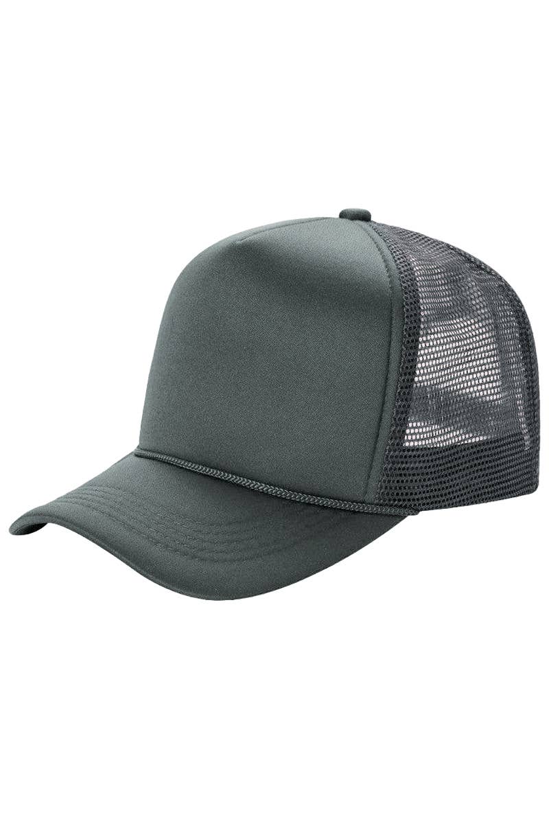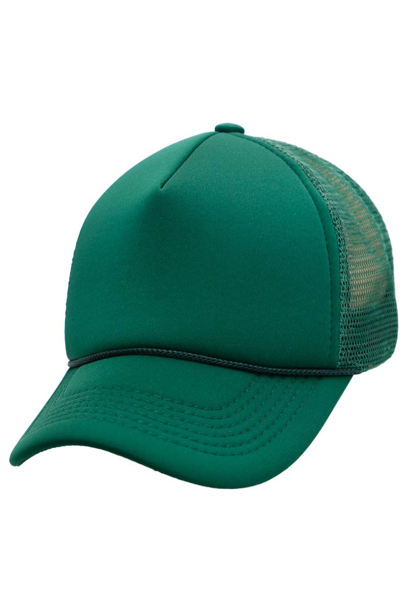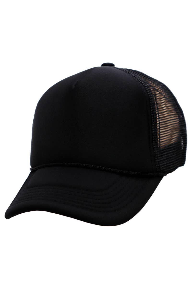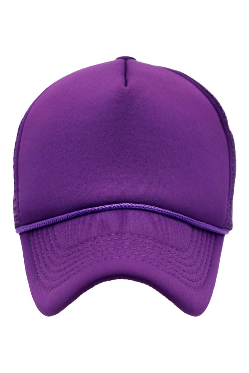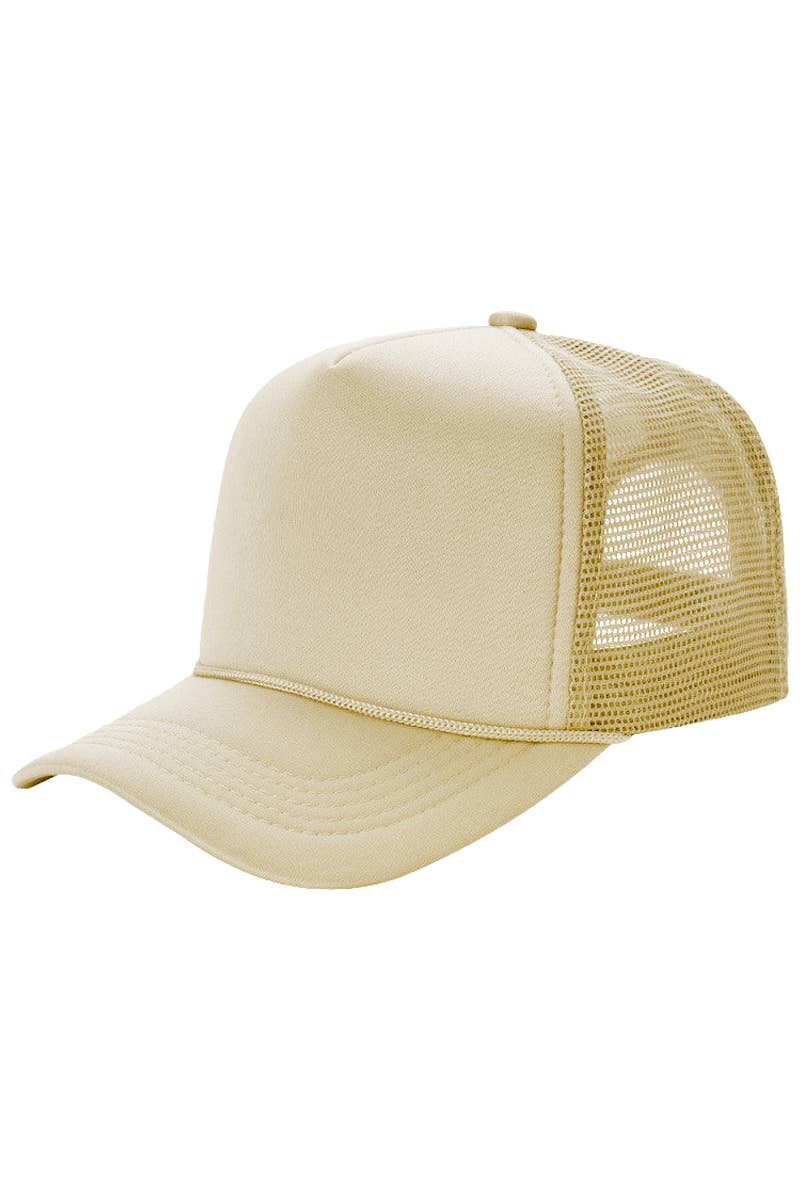 Solid Classic Five Panel Polyester Fabric Trucker Hat -Features Sennit String Rope, Sponge Padded Foam Insulated Front Panel Curved Bill with Breathable Mesh Snap Back Rear Panel -100% Polyester