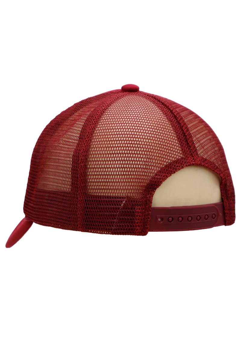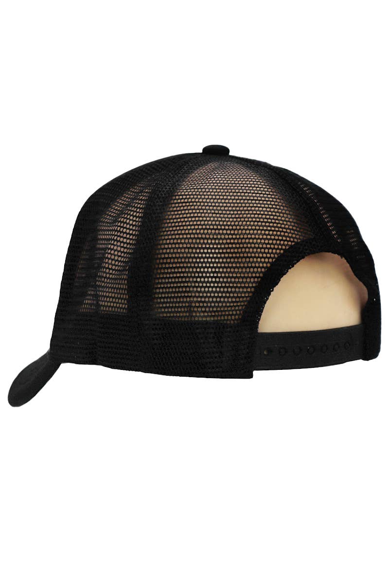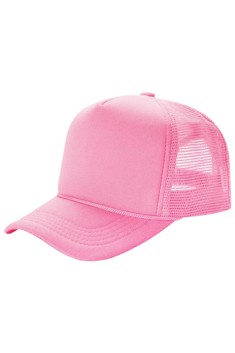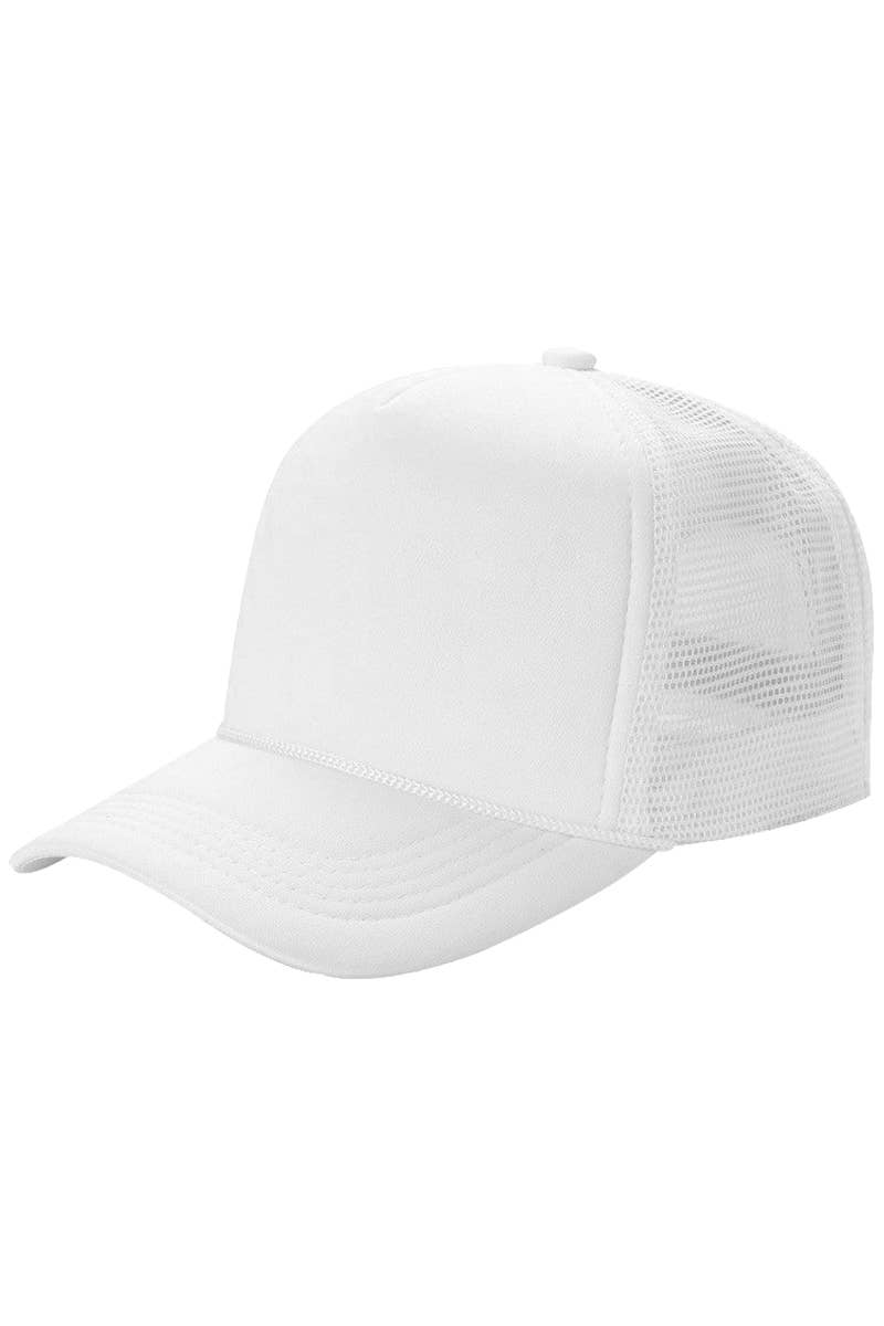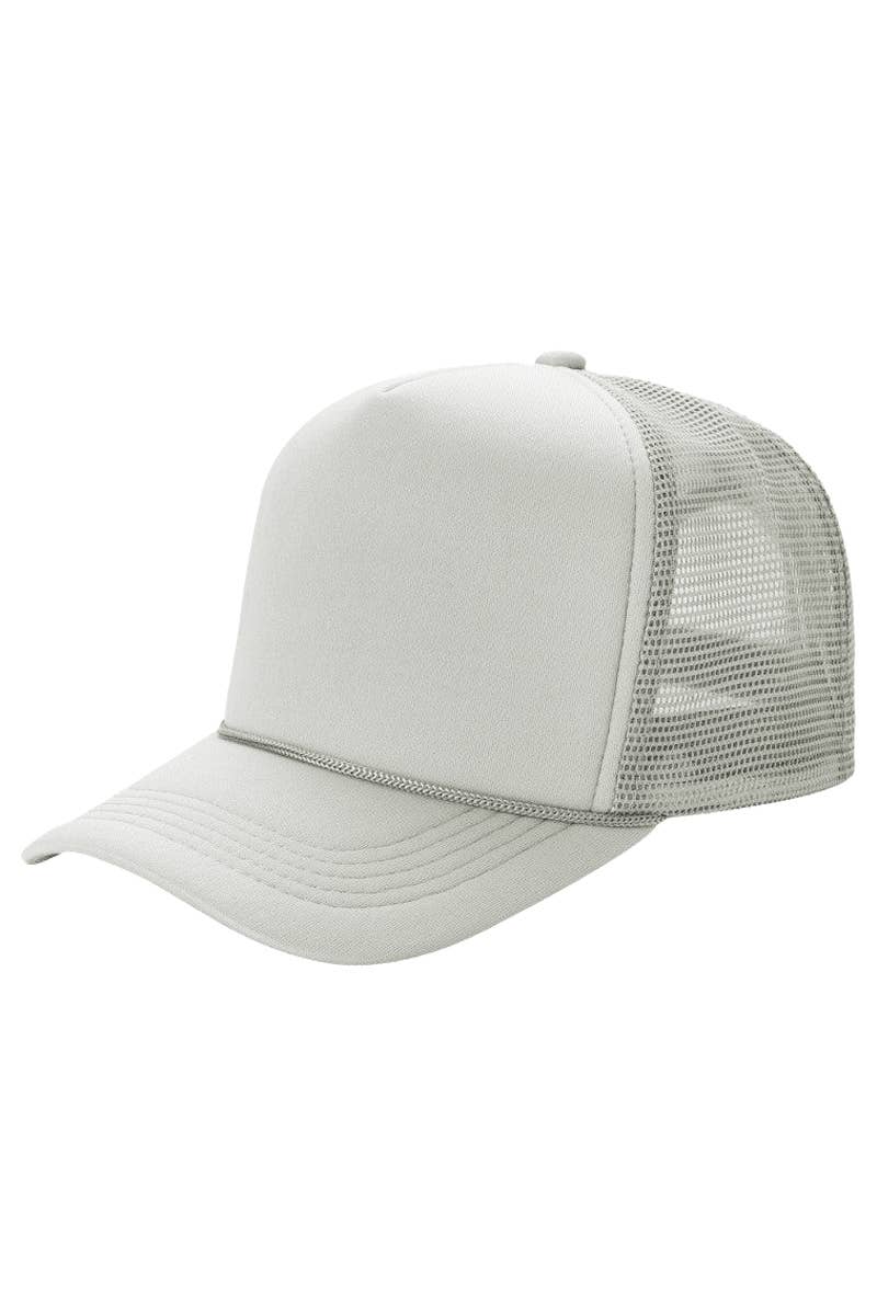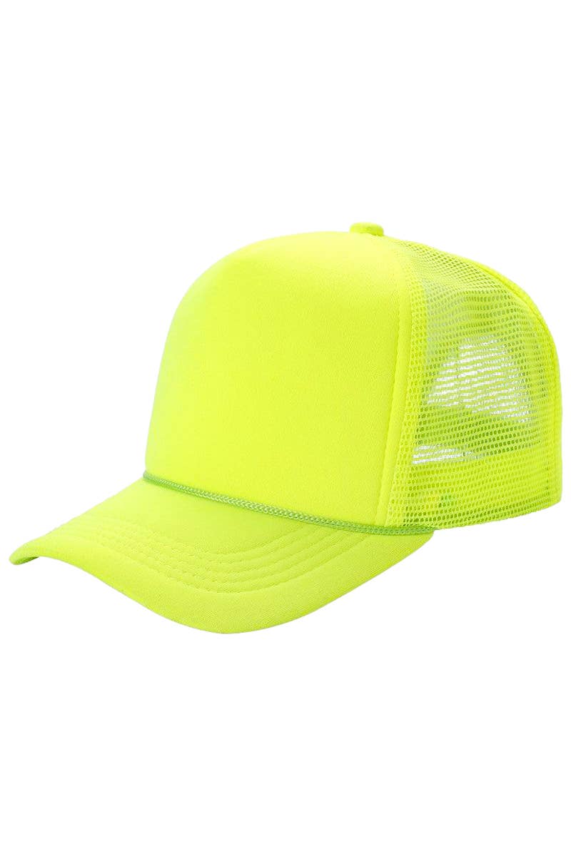 Solid Classic Five Panel Polyester Fabric Trucker Hat -Features Sennit String Rope, Sponge Padded Foam Insulated Front Panel Curved Bill with Breathable Mesh Snap Back Rear Panel -100% Polyester