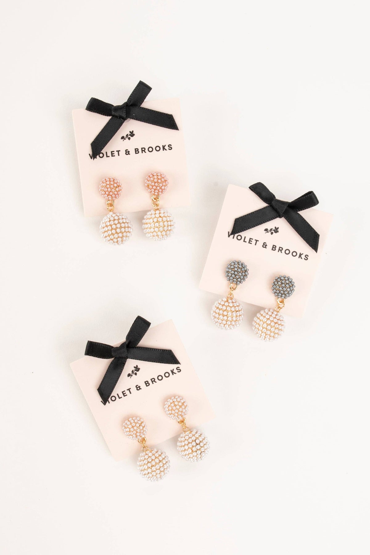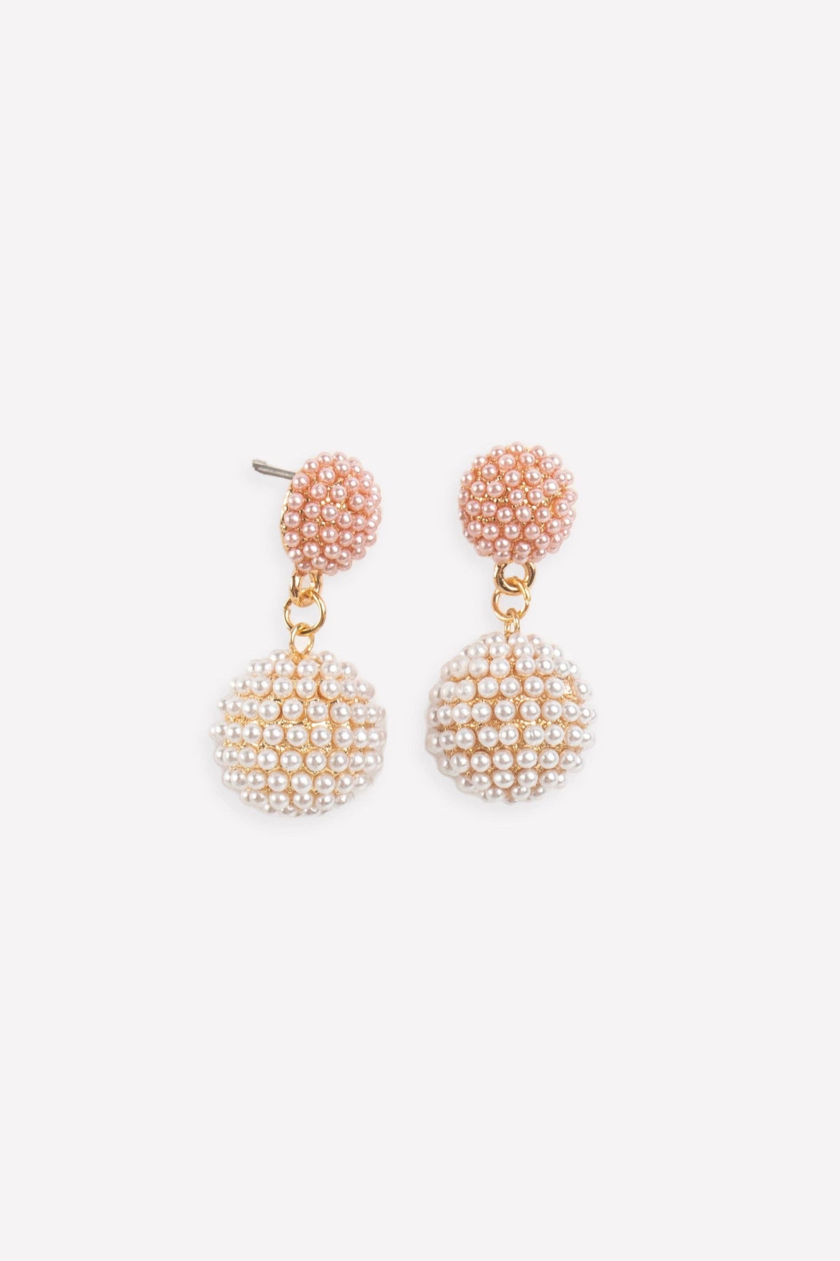 Embrace the classic style of pearl with a new silhouette. Pave pearls shimmer as you move, and if you're looking for something a bit different, these earrings come in pink and blue as well as white pearl!